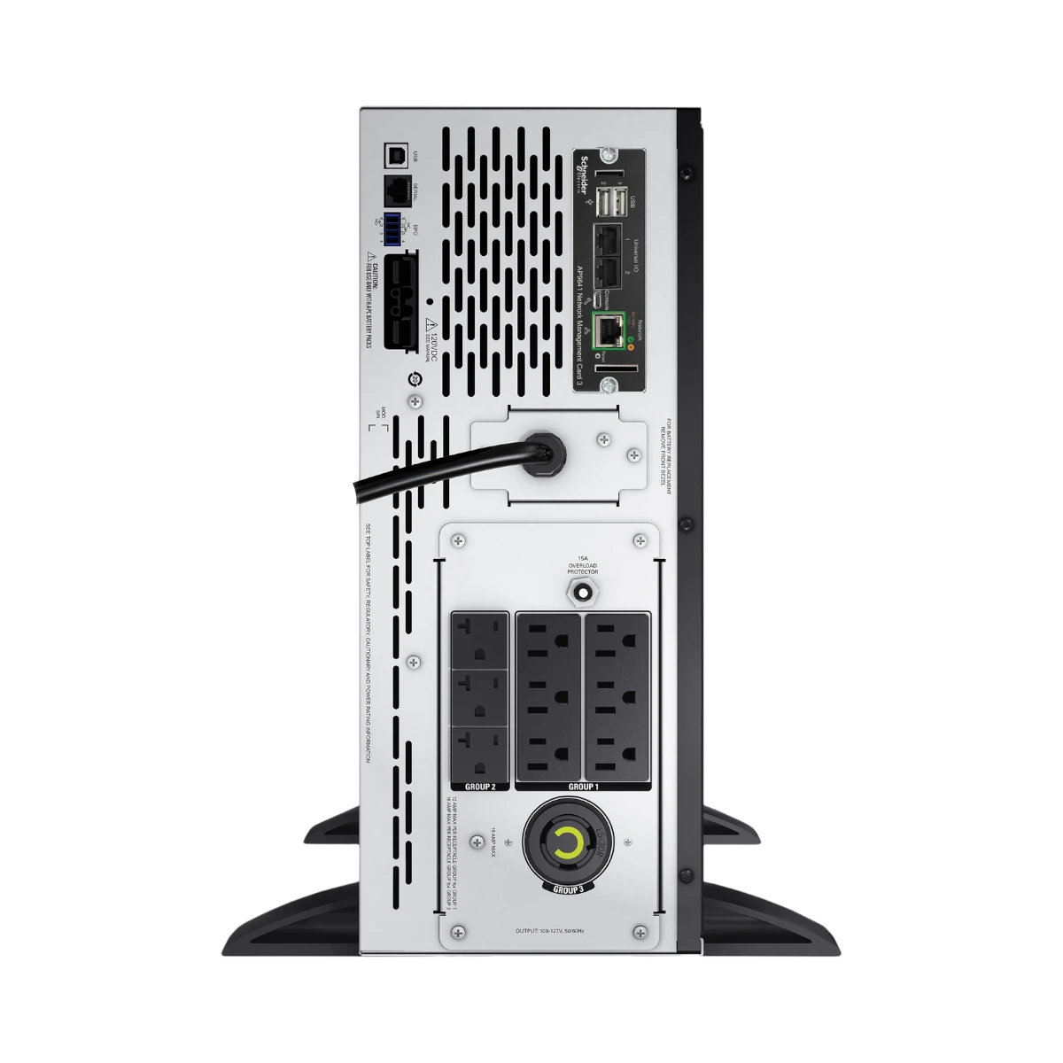 This UPS includes a diverse set of outlets to accommodate different power requirements and features a pre-installed Network Management Card for remote monitoring and control. Hot-swappable batteries and a fast recharge time help minimize downtime, while switchable outlet groups offer flexible power management tailored to your setup.