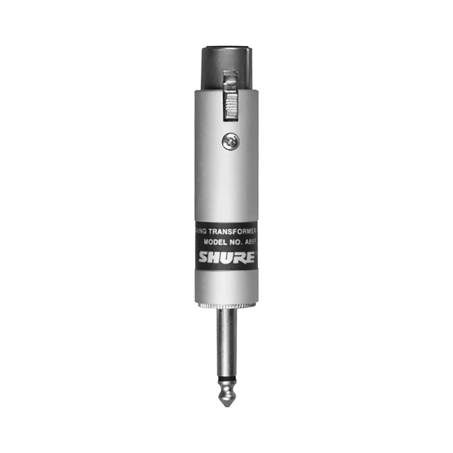 The Shure A85F is a microphone matching transformer designed to connect a balanced, low-impedance microphone to an unbalanced, high-impedance input. It serves as a crucial link between professional microphones and audio equipment such as mixers and recorders that only accept unbalanced inputs. This transformer ensures that audio signals remain clear and consistent by preventing signal loss and interference during the conversion process.