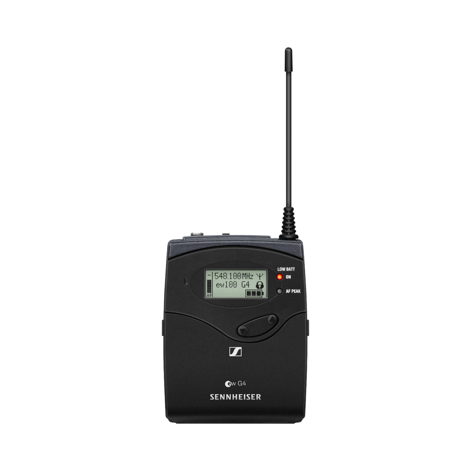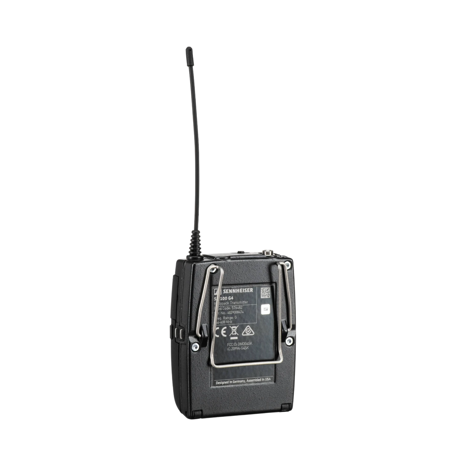 This transmitter is designed to work seamlessly with the Sennheiser EM 100 G4 receiver, ensuring stable and interference-free wireless audio transmission. The locking 3.5 mm input jack accepts a variety of microphones, including lavalier and headset types, as well as instrument cables when used with the correct adapter. Its backward compatibility with earlier Evolution Wireless systems allows users to expand or upgrade their wireless setups without replacing all components, making it a flexible choice for evolving audio needs.