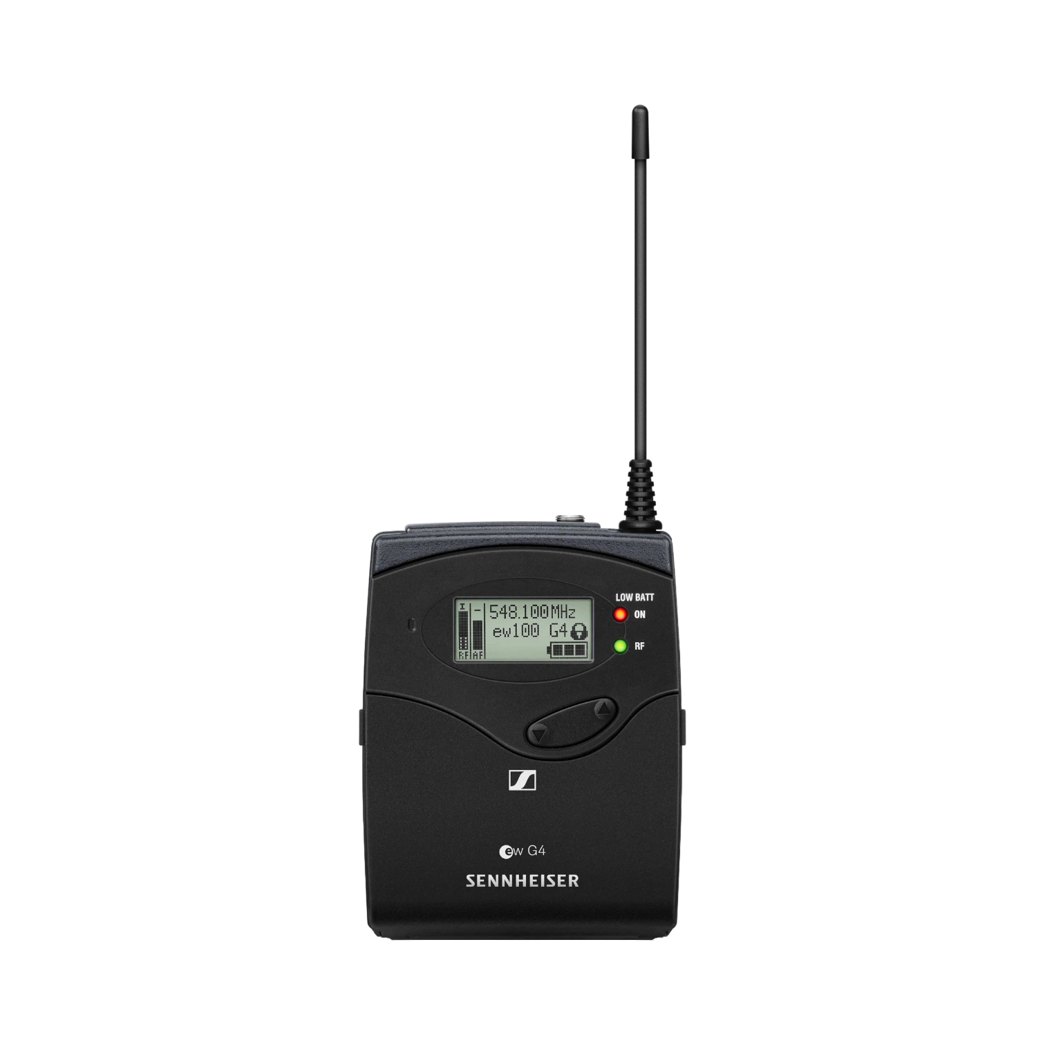 - Display: high-contrast LED for battery, RF, and audio level monitoring