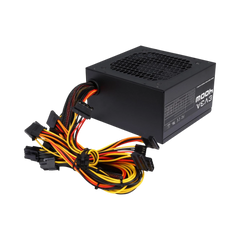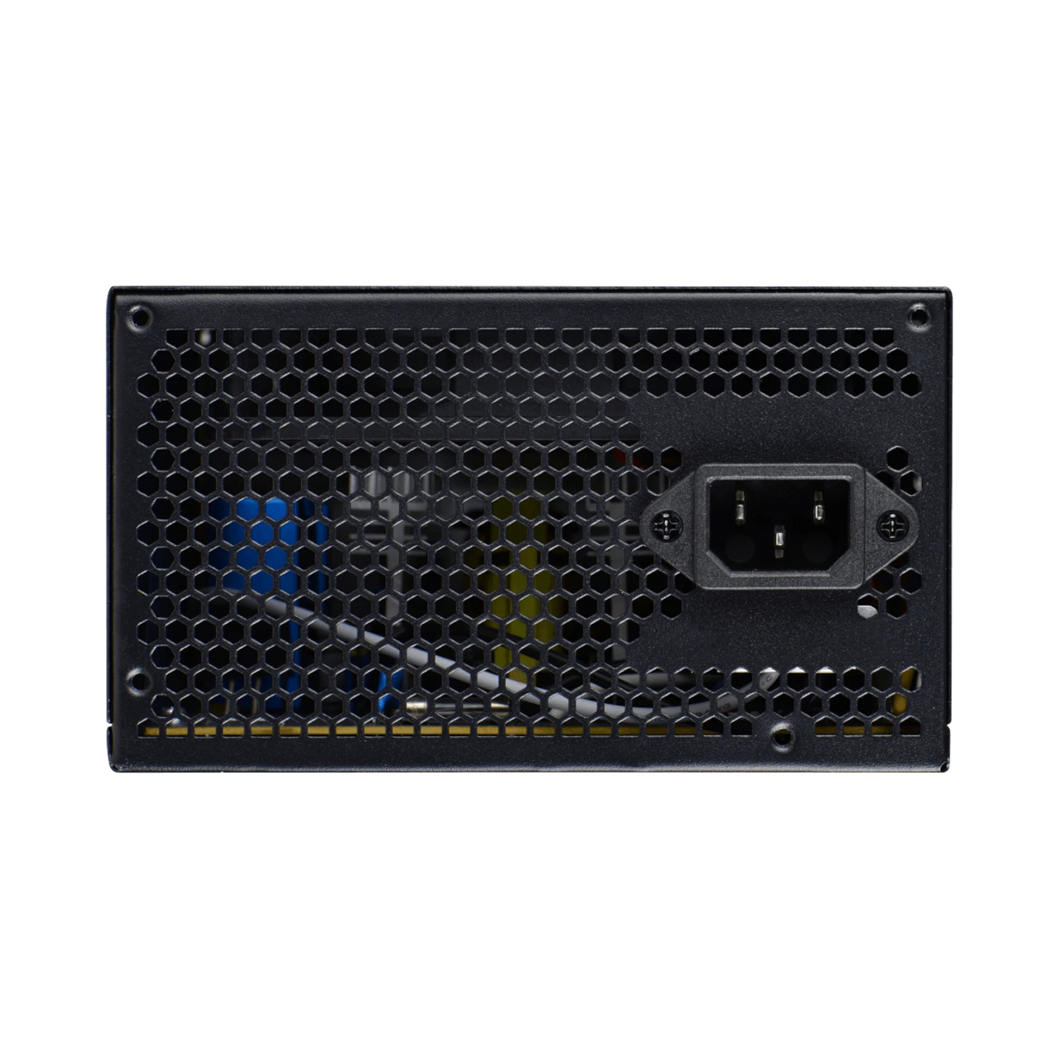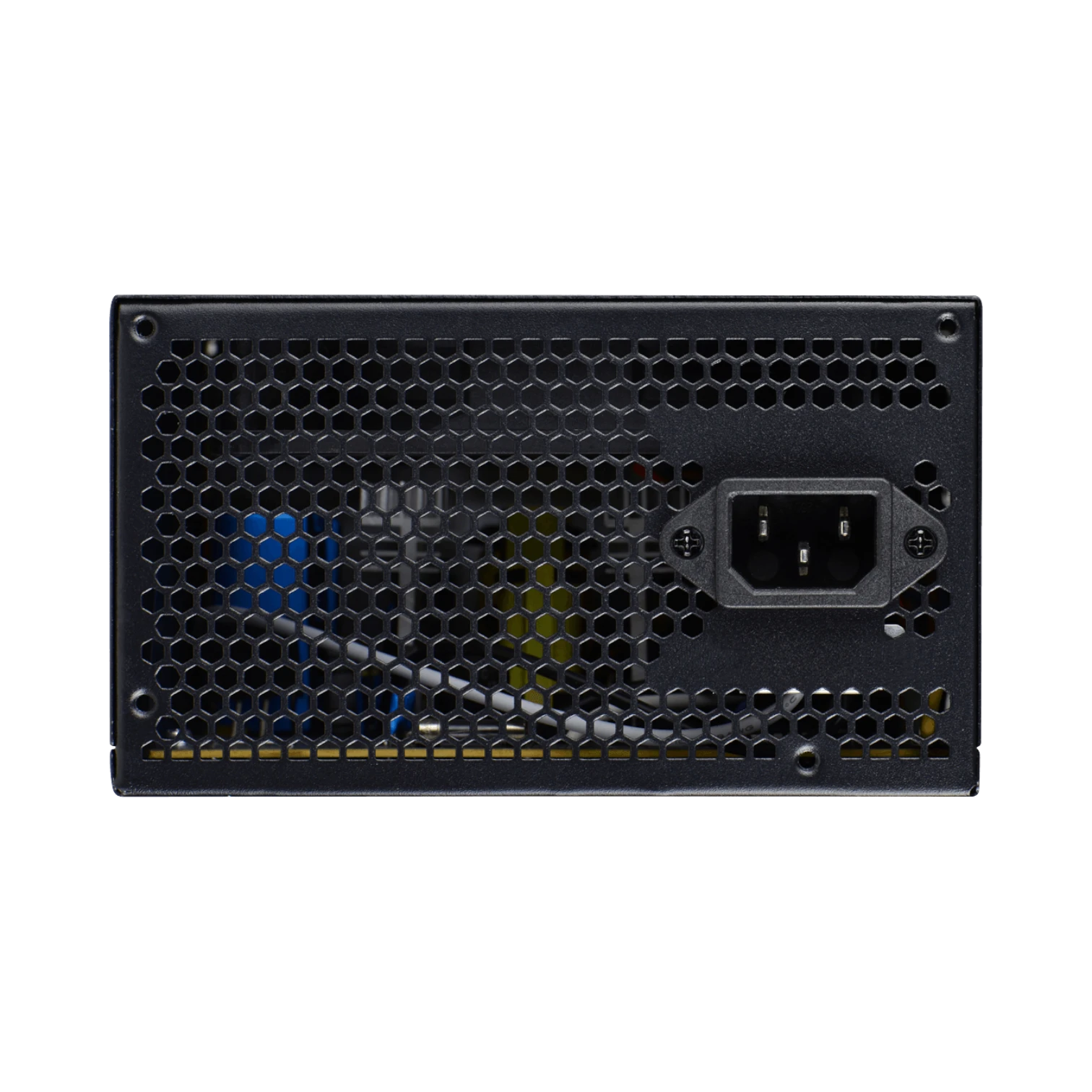 This power supply covers the essential power connections needed for most entry-level and budget desktop PCs. The included 24-pin ATX connector powers the motherboard, while the EPS connector supports CPU power. PCIe connectors allow for basic graphics card support, and SATA and peripheral cables provide power to storage drives and other peripherals. Its support for both 115 and 230 VAC input voltages makes it suitable for use in a wide range of geographic locations without requiring additional adapters.
