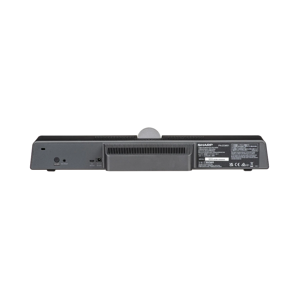 The Sharp PN-ZCMS1 is a 4K AV soundbar designed to enhance video conferencing by combining high-quality audio, a sharp 12 MP camera, and intuitive controls. It delivers clear sound through an 8W speaker system and captures wide room coverage with a 120° field of view, making it easier for both in-room and remote participants to engage naturally during meetings.