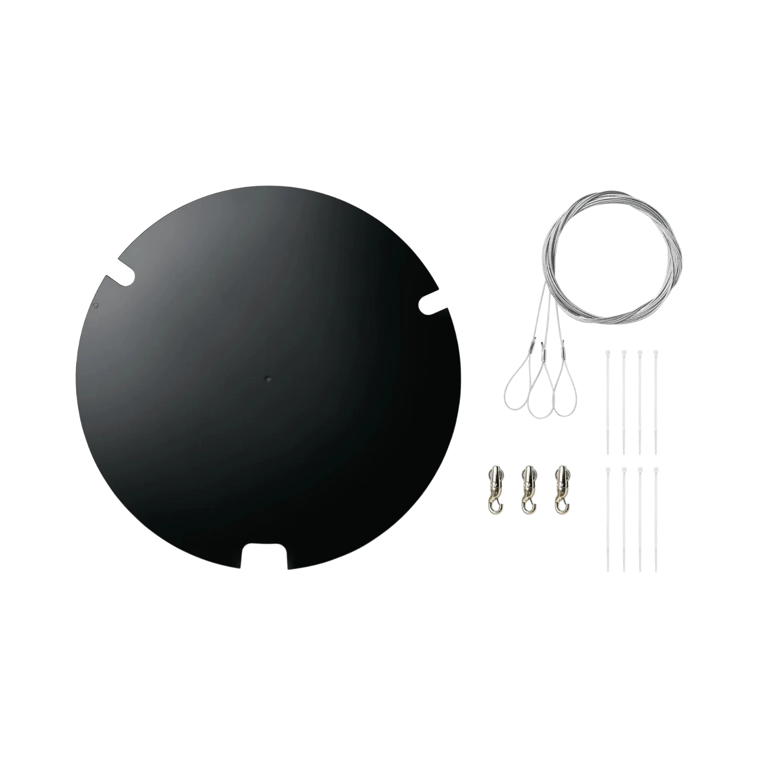 The kit provides all necessary hardware for suspension mounting except for Ethernet cables and ceiling anchors, which installers select based on the specific building structure. This approach offers flexibility to adapt to various ceiling types and rigging requirements. The included cable ties assist in organizing and dressing cables neatly, ensuring the installation remains visually clean and professional. The suspension method avoids direct ceiling drilling, making it suitable for sensitive or historic environments.