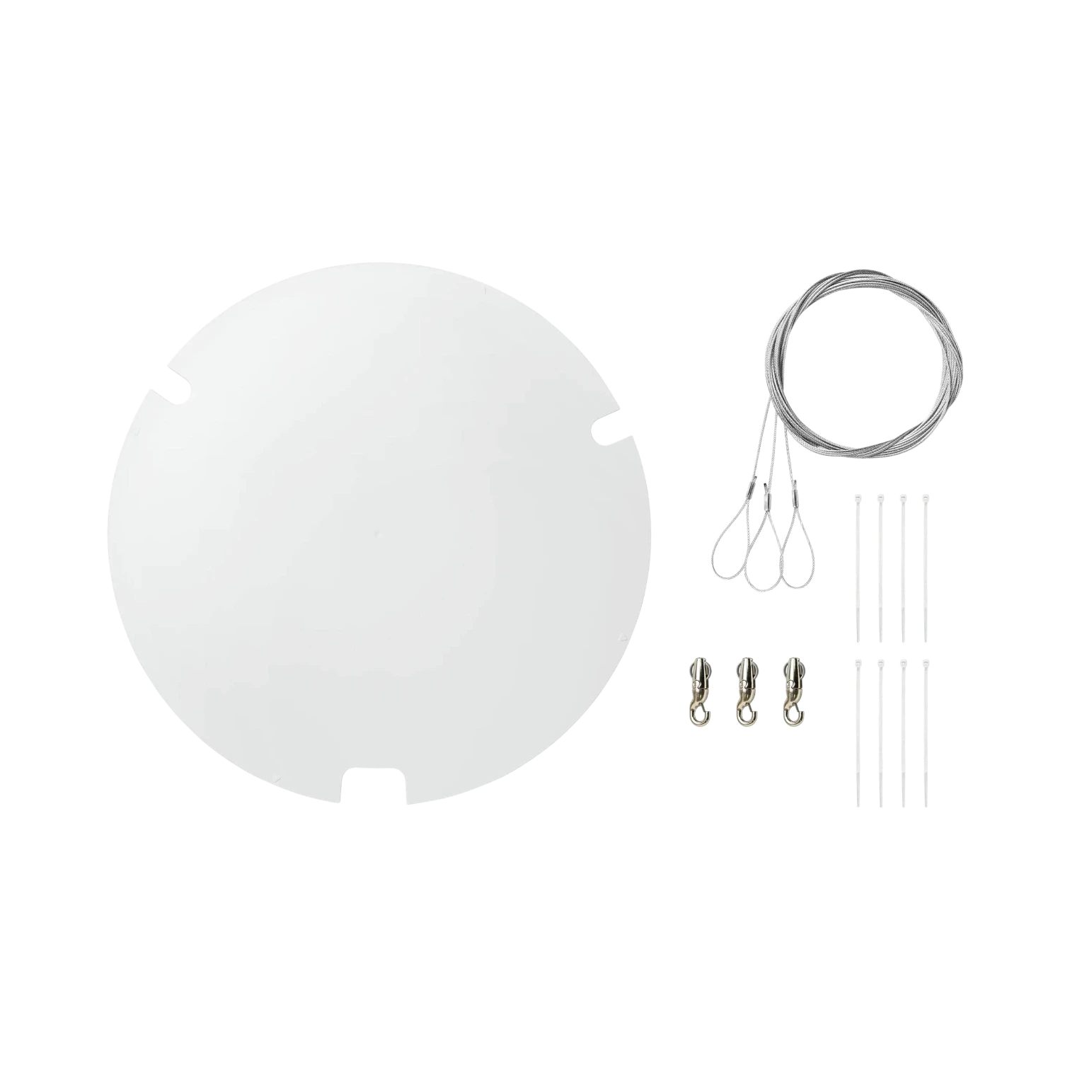 - Includes: three steel cables with Gripple connectors, white back cover, eight cable ties