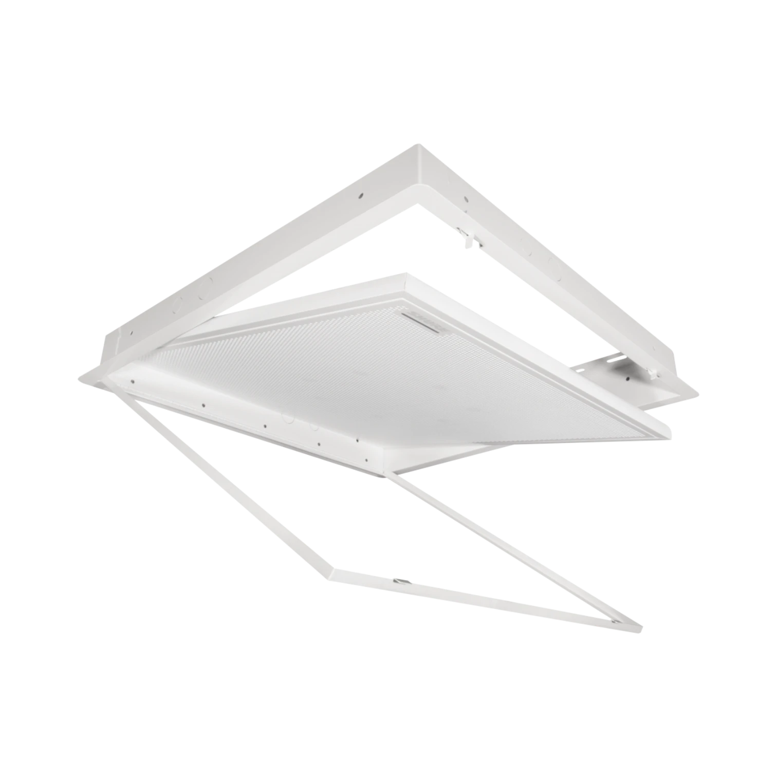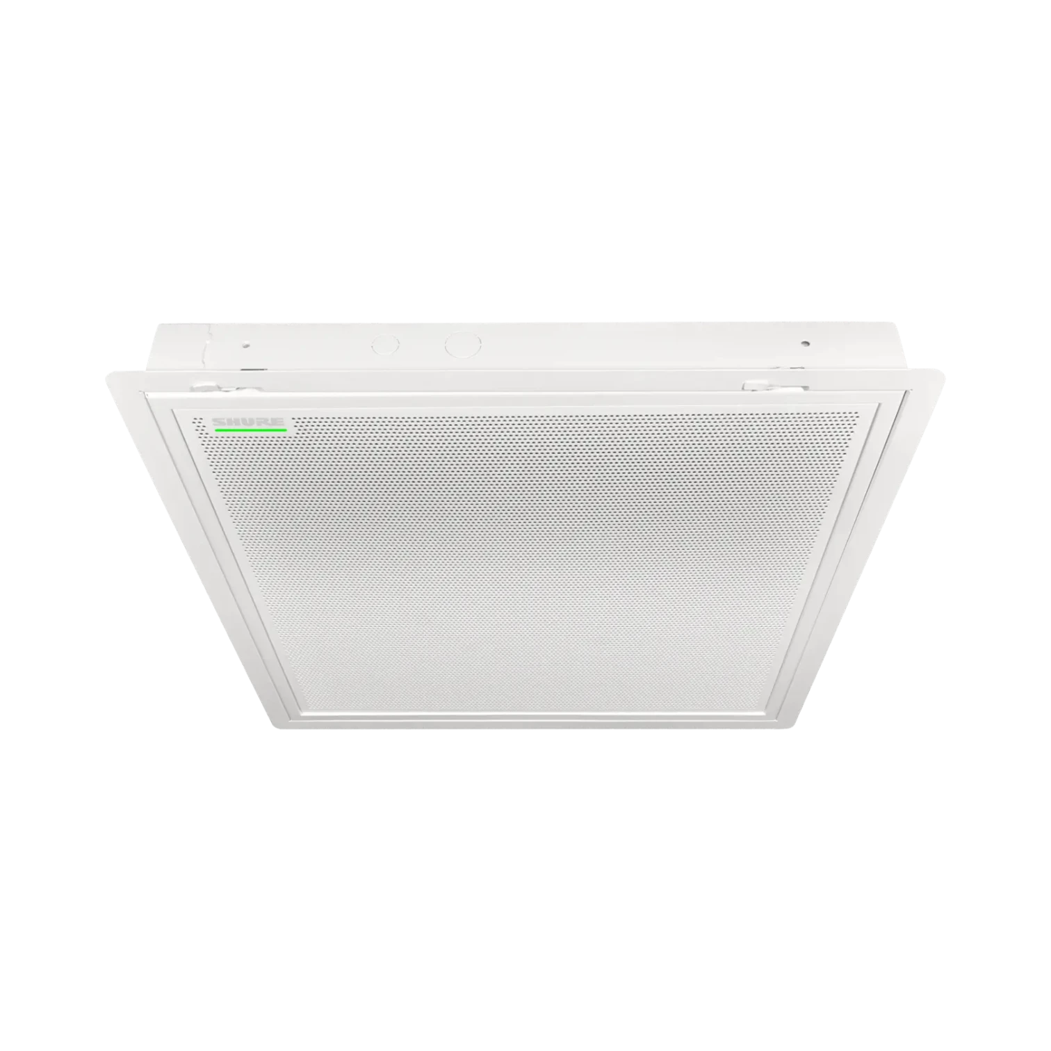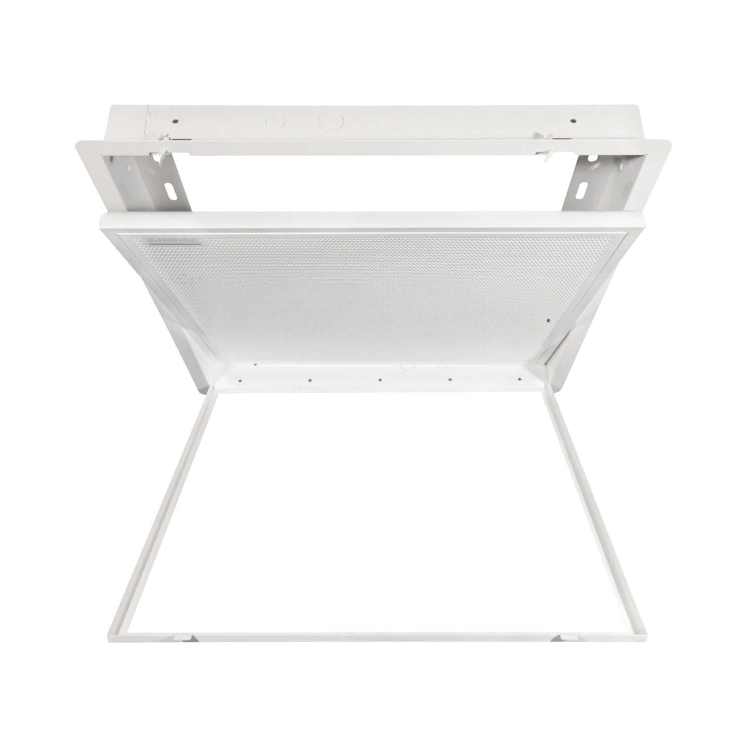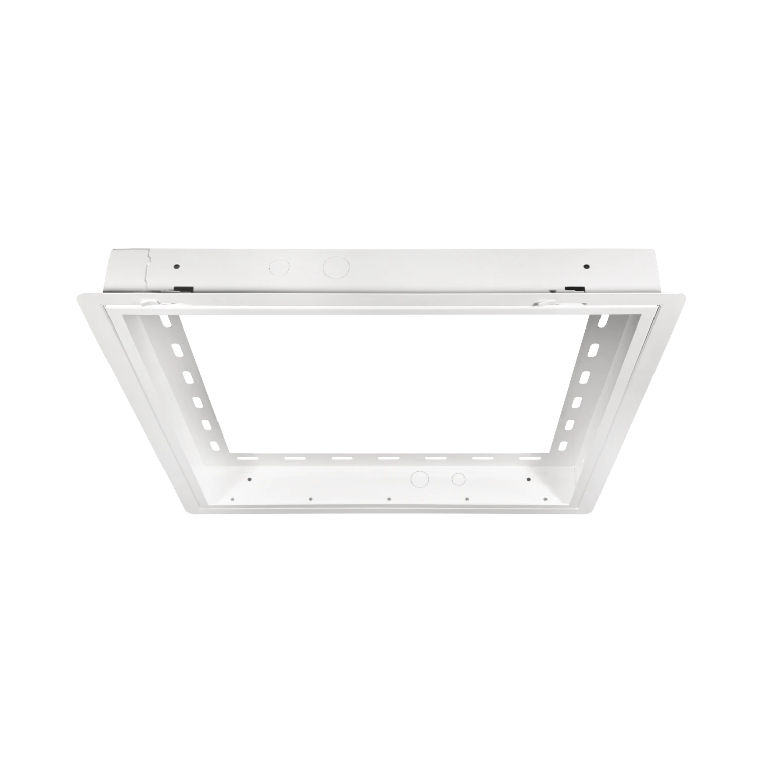 - Flush ceiling mount that integrates seamlessly with drywall and other hard ceiling surfaces without visible hardware