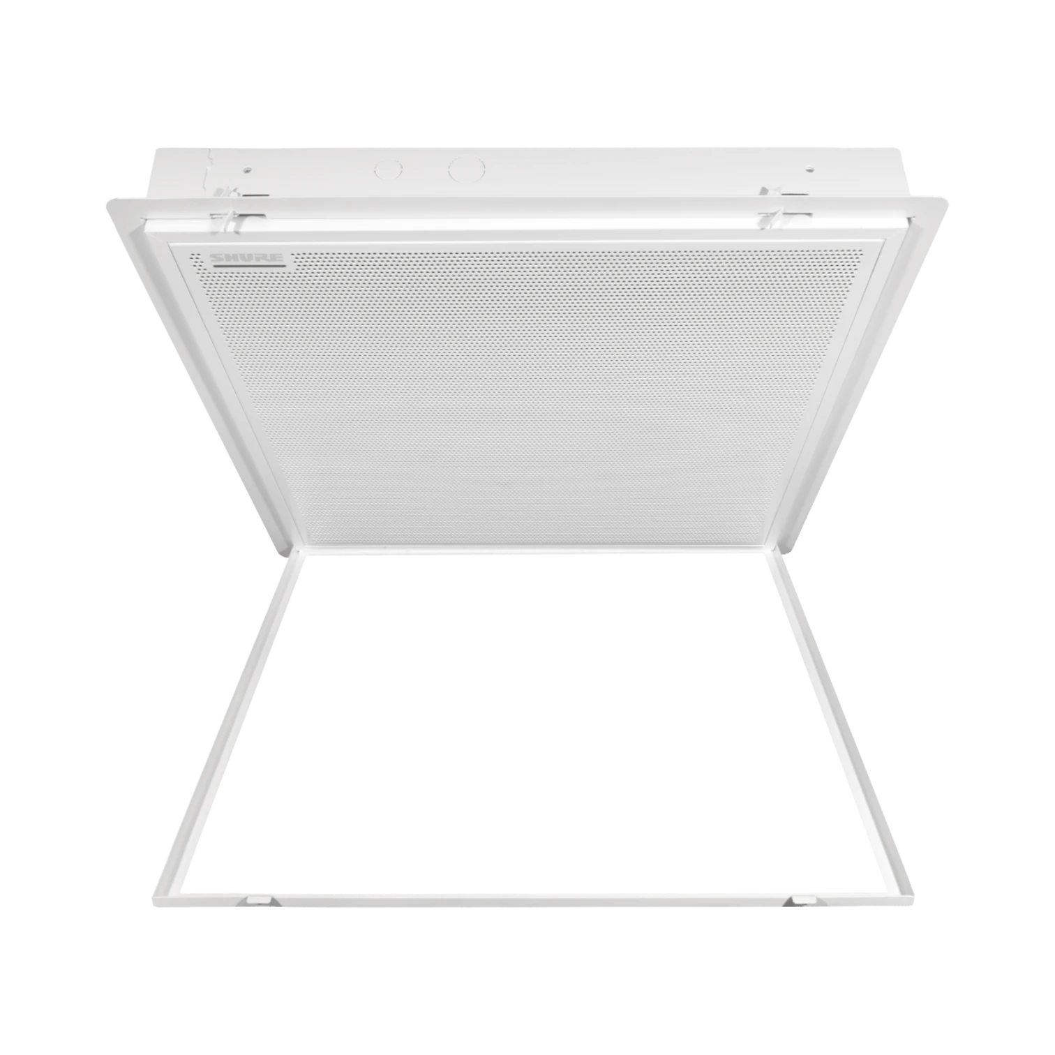 The A910-HCM mount is designed to simplify the installation process by allowing it to be secured to ceiling framing or a Unistrut system before the microphone is delivered. This approach helps keep construction on track and prevents damage to finished ceilings. The integrated knockouts provide a clear path for electrical conduit, making cable management neat and efficient. Its paintable surface means it can be customized to match the ceiling color, ensuring the mount remains unobtrusive.
