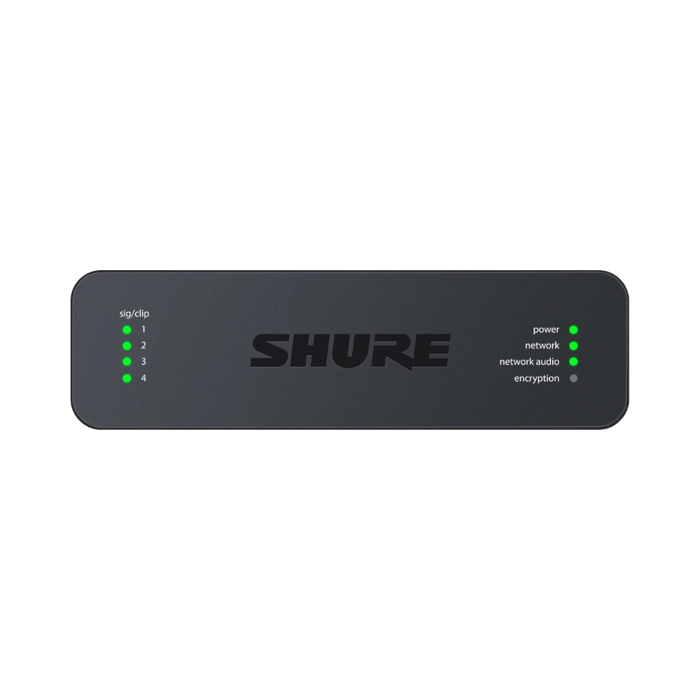 The Shure ANI4OUT-BLOCK is a 1/3-rack audio network interface designed to convert Dante digital audio signals into four independent analog outputs via block connectors. It provides a seamless connection between modern Dante audio networks and legacy analog equipment such as mixers, amplifiers, or recording devices that require balanced analog inputs. This unit simplifies installations by delivering Dante audio, power through PoE, and control data over a single Ethernet cable, making it an efficient solution for professional audio environments.