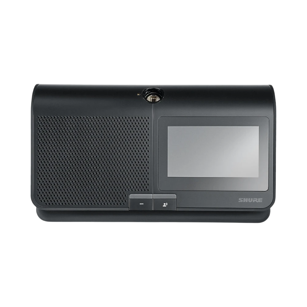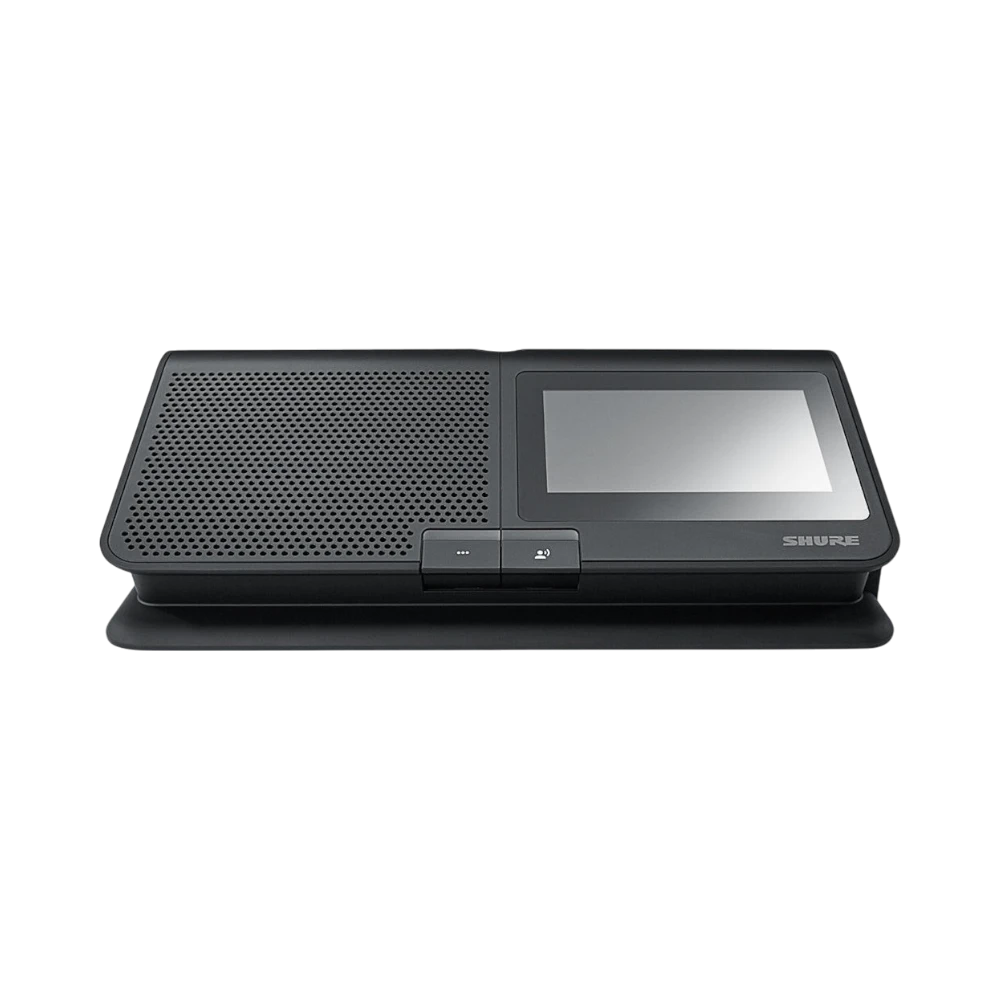 The Shure MXCW640 is a wireless conference unit designed to streamline meeting management in both flexible and fixed conference environments. It integrates a microphone interface, built-in loudspeaker, and user controls into a single tabletop device featuring a 4.3-inch color touchscreen. This screen displays speaker queues and supports voting functions, making it easier to coordinate discussions and decisions. Operating on 2.4 GHz and 5 GHz wireless bands, it offers a cable-free setup that adapts to various meeting spaces.