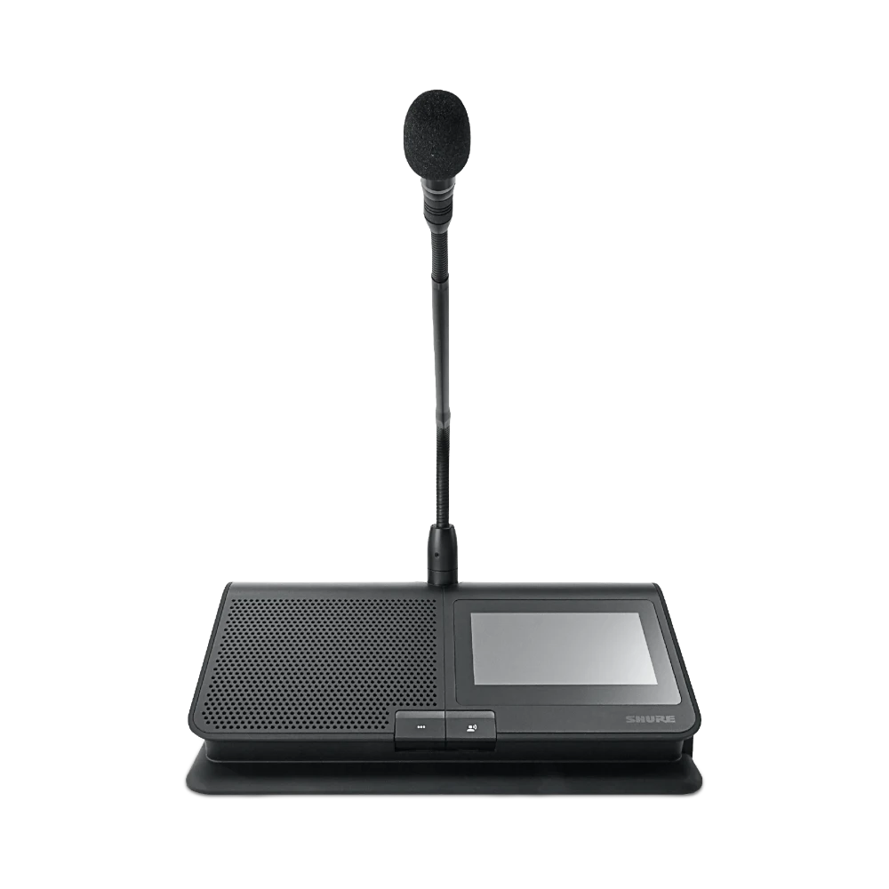 - Lockable 10-pin input compatible with Shure MXC-series gooseneck microphones for flexible microphone options