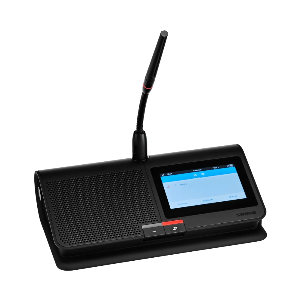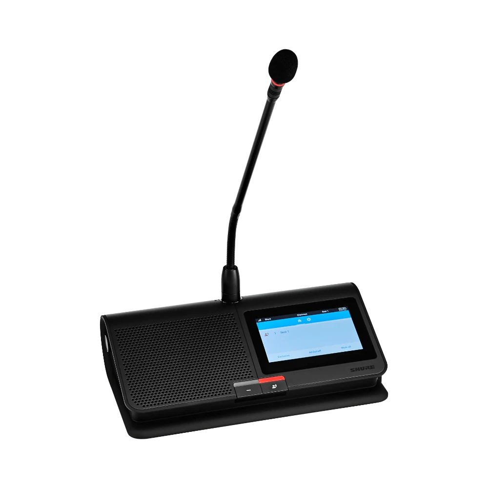 - 4.3-inch color touchscreen that displays speaker queues and enables voting for efficient meeting control