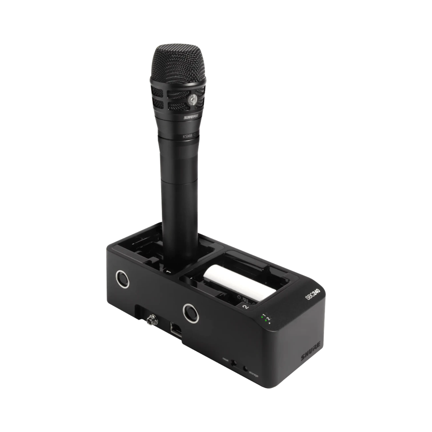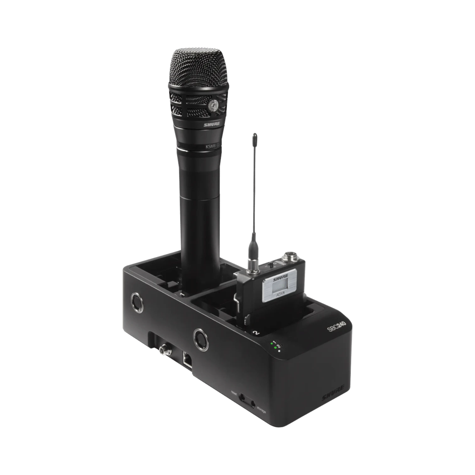 - Charges two Shure rechargeable batteries or transmitters simultaneously, optimizing workflow and reducing downtime.