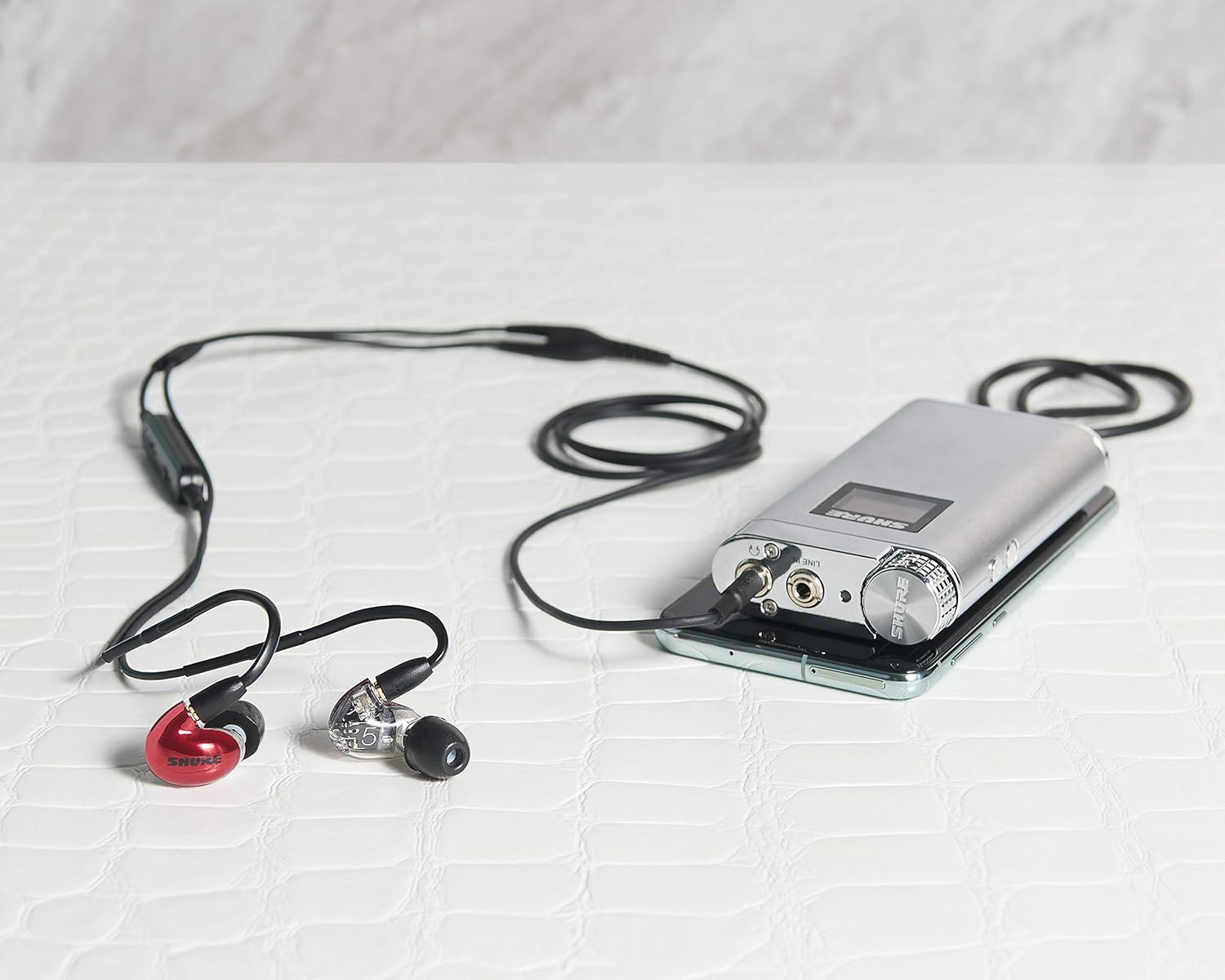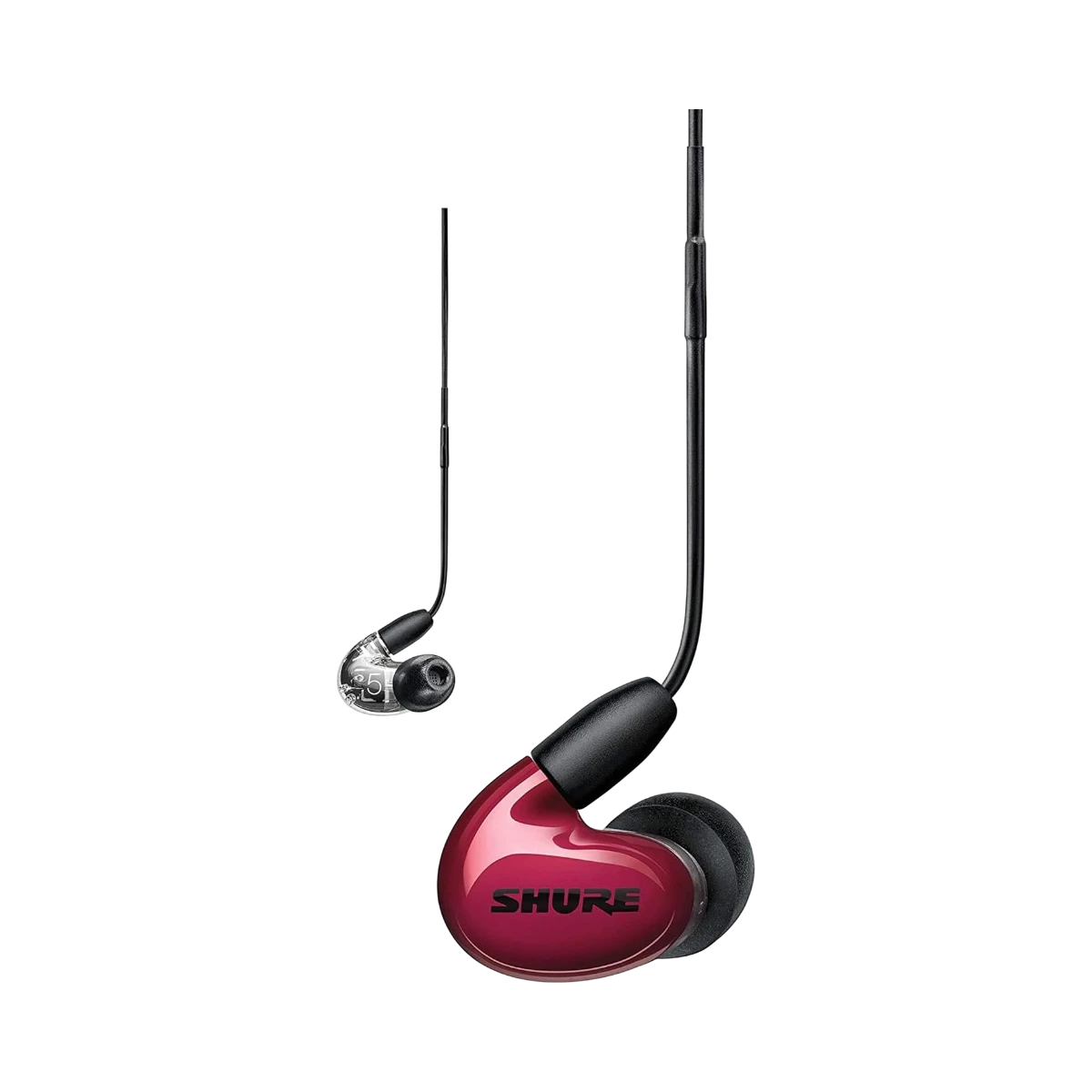 The Shure SE53BARD+UNI is a pair of red AONIC 5 sound-isolating earphones designed to deliver studio-quality audio with three balanced armature drivers in each earpiece. These drivers provide spacious highs, smooth midrange, and natural bass, making them suitable for critical listening, lossless streaming, or everyday use. The ergonomic design blocks up to 37 dB of external noise, allowing you to enjoy clear sound even in noisy environments.
