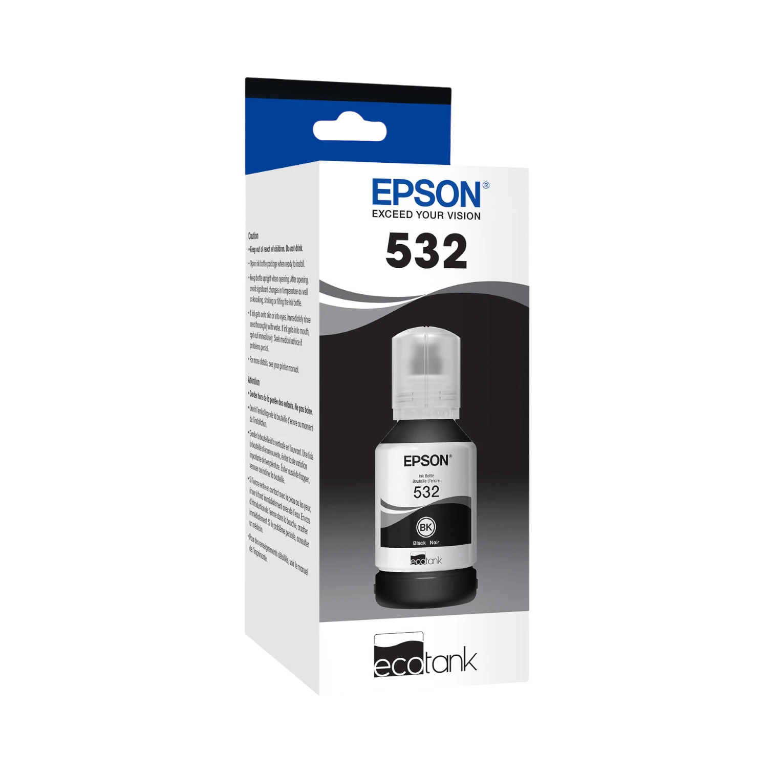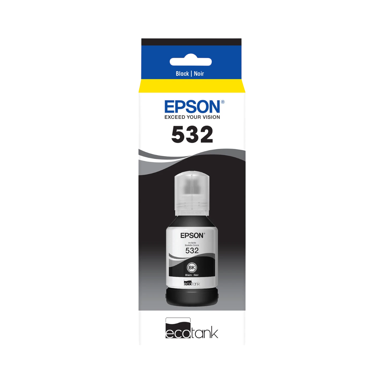 The Epson T532120-S is a black ink bottle designed for select EcoTank and WorkForce monochrome printers, providing 120mL of pigment-based ink that produces sharp text and clear graphics. It supports high-volume printing with a yield of up to 6000 pages, making it suitable for professional documents and everyday printing tasks. The EcoFit design ensures a straightforward and mess-free refill process, fitting only compatible printer models to prevent errors.