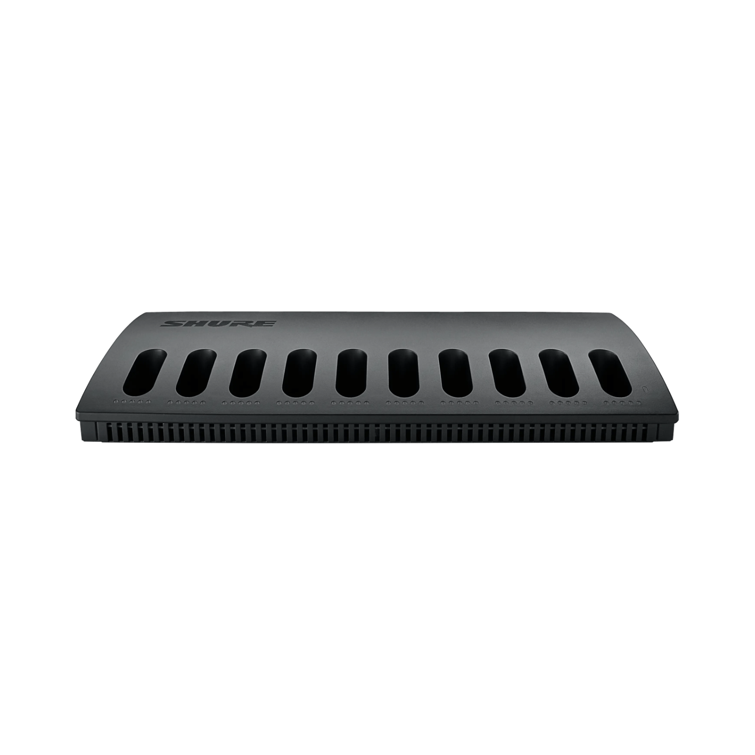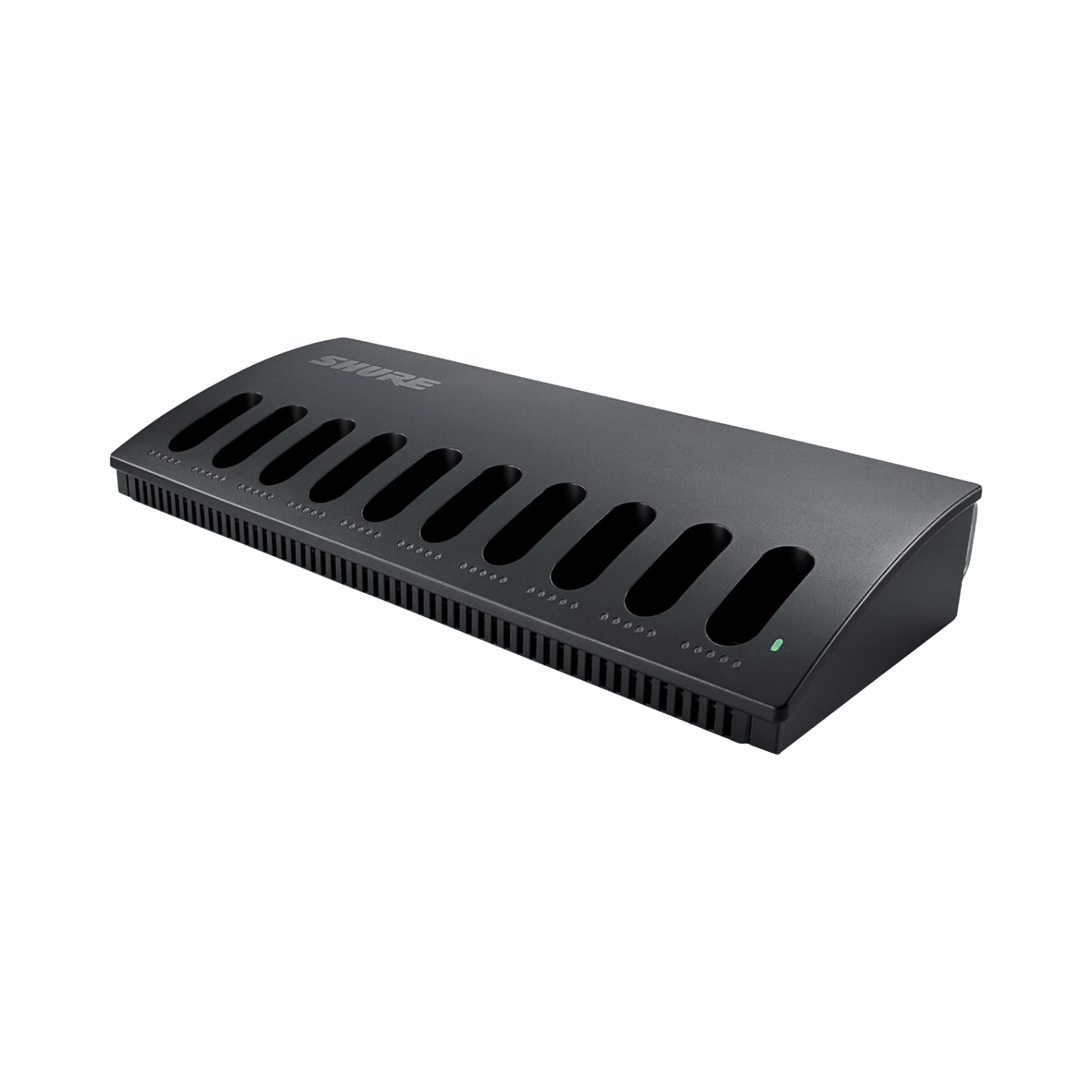 The Shure MXCWNCS-US is a networked charging station designed to efficiently manage and recharge SB930 batteries used with the MXCW640 Wireless Conference Unit. It can charge up to 10 batteries simultaneously, reaching half charge in just 1.5 hours and a full charge within 4 hours. This makes it an excellent choice for environments where quick battery turnaround and reliable power are critical, such as conference rooms and event spaces.