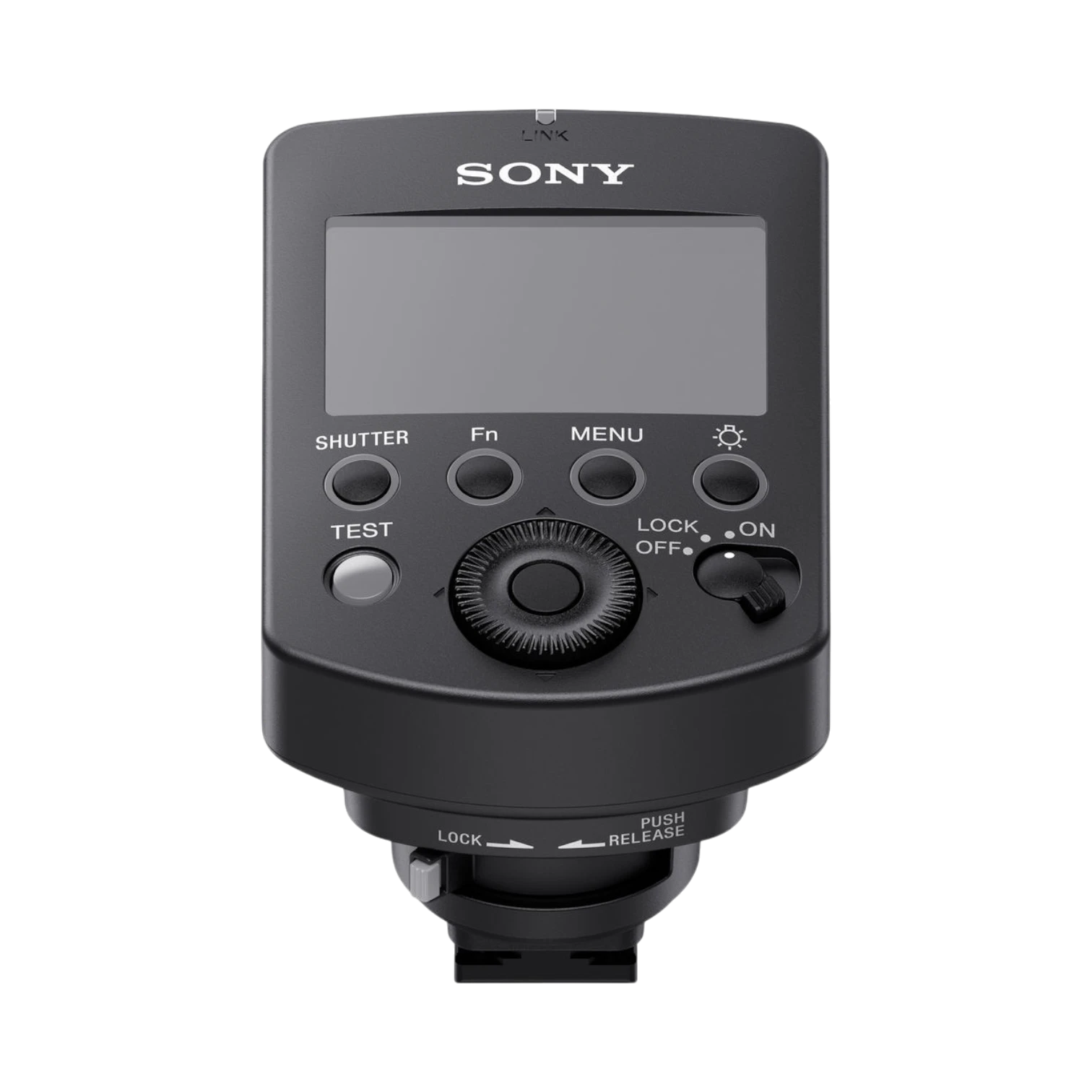 The Sony FA-WRC1M is a wireless radio commander designed to provide photographers with precise and reliable control over off-camera flash units. It connects directly to Sony cameras via the Multi Interface Shoe and manages up to 15 FA-WRR1 Wireless Radio Receivers or compatible RM-series flashes from distances up to 98.4 feet. This commander supports both TTL flash metering for automatic exposure and manual adjustments, making it suitable for a variety of lighting setups in studio or outdoor environments.