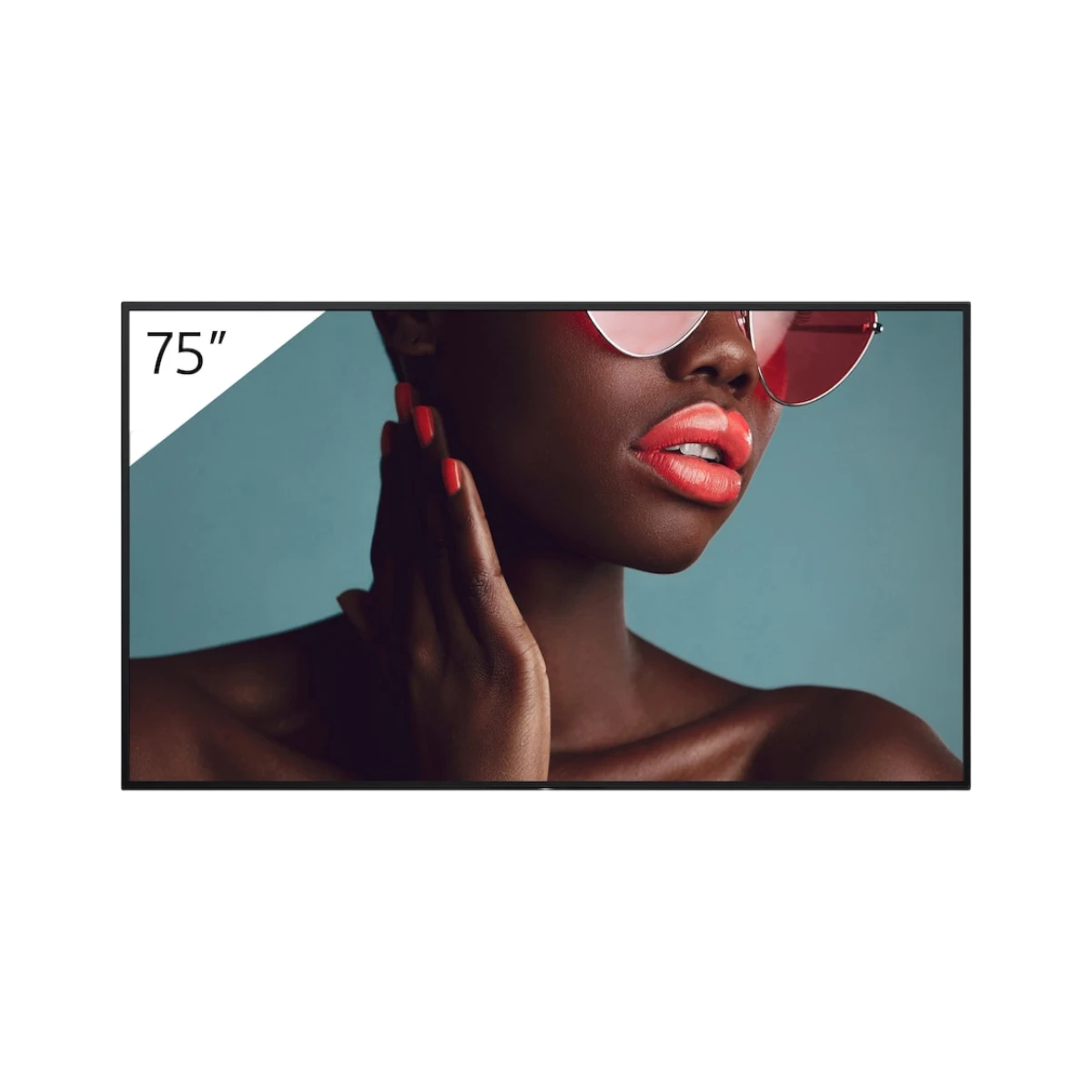 The Sony FW-75BZ40L is a 75-inch UHD 4K HDR commercial display designed to deliver bright and clear images in demanding environments such as retail stores, corporate offices, and educational institutions. With a brightness of 700 cd/m² and a dynamic contrast ratio of 600,000:1, it ensures content remains visible and detailed even in well-lit spaces. The display features Sony’s Deep Black Non-Glare technology to reduce reflections and TRILUMINOS PRO technology for natural and lifelike color reproduction, making it suitable for presentations, digital signage, and collaborative workspaces.