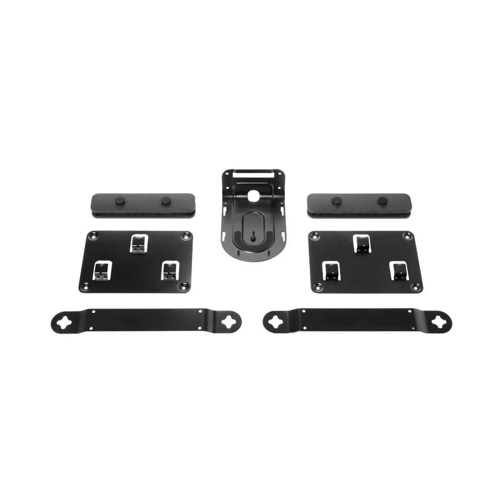 The Logitech 993-001904 is a mounting kit designed to organize and secure the components of the Logitech Rally system. It provides custom brackets for the camera, speakers, and hubs, ensuring a clean and professional setup that minimizes clutter. The kit supports flexible camera placement options and promotes better airflow for the hubs, making it suitable for various meeting room sizes and configurations.