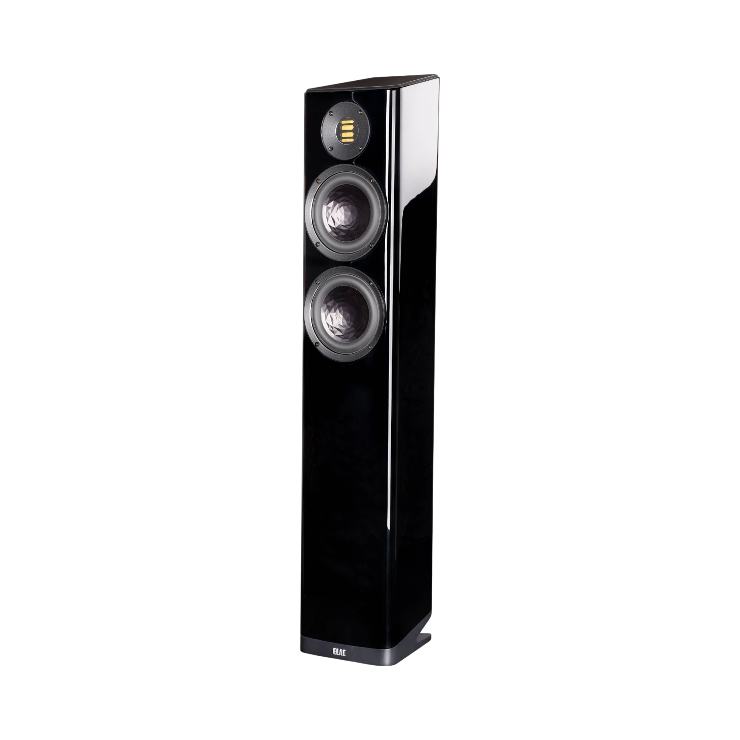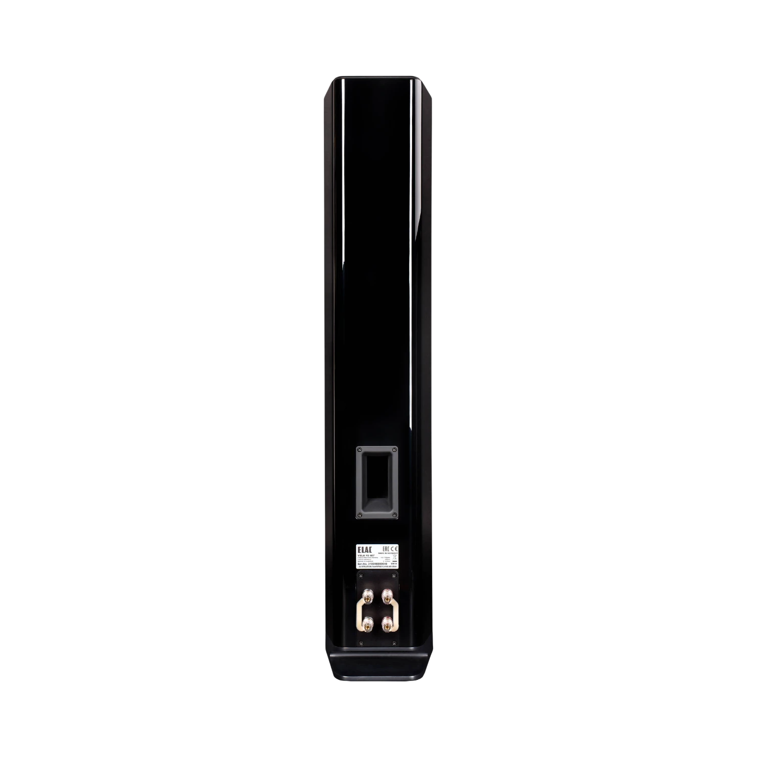 The ELAC Vela FS 407 (VFS407-GB) is a 2.5-way floorstanding speaker designed to deliver clear and dynamic sound with a wide frequency range from 30 Hz to 50 kHz. It features a JET 5 folded ribbon tweeter for detailed treble and two 5.9-inch aluminum and paper cone drivers that provide balanced midrange and bass. Its trapezoid-shaped cabinet in gloss black reduces vibrations, ensuring accurate sound reproduction for music and home theater use.