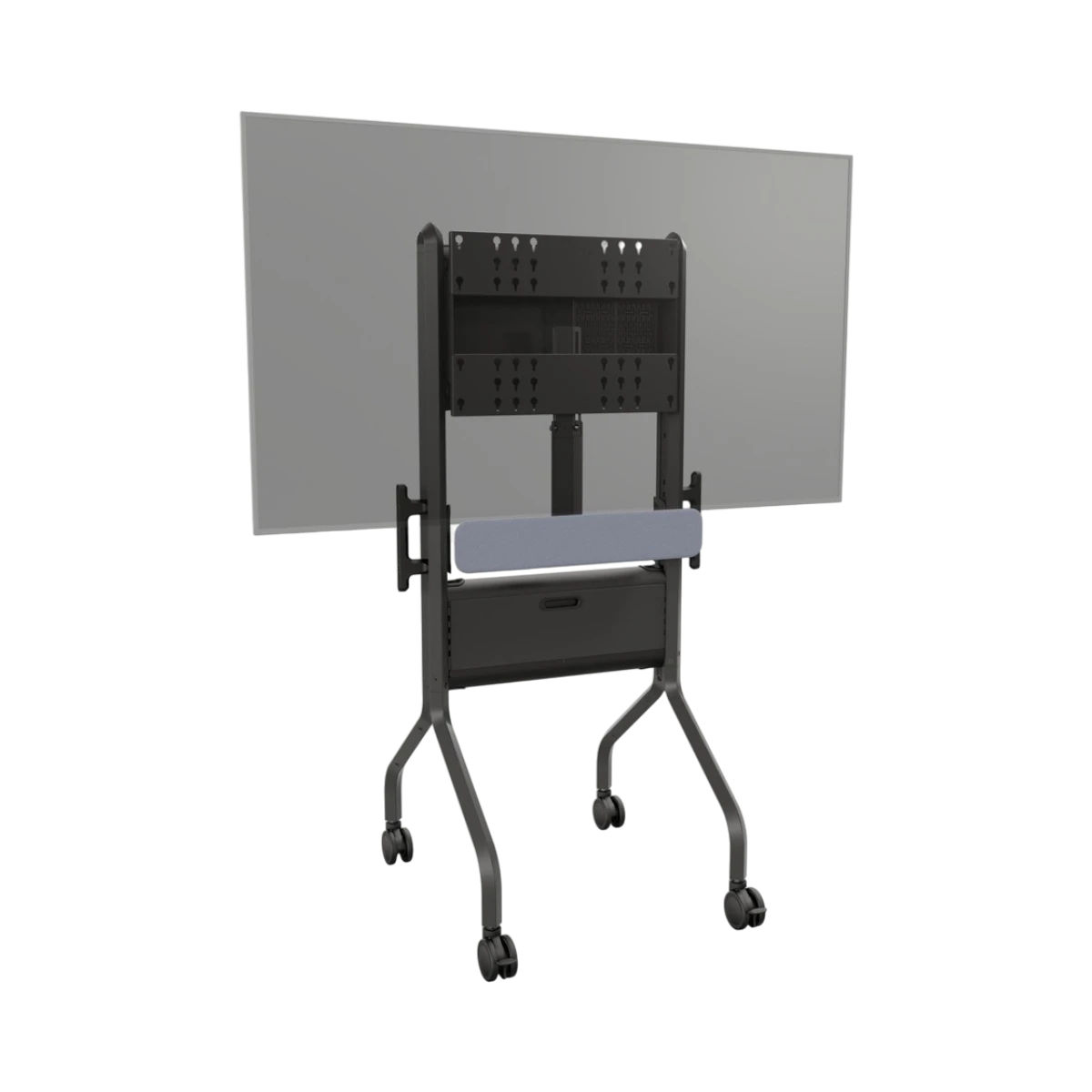 This AV cart fits well in professional and educational environments where large displays are frequently used and need to be repositioned or shared among different users. It is a strong choice for conference rooms, classrooms, and hospitality venues that require a mobile, secure, and organized solution for presentations, collaborative sessions, and video calls. The manual height adjustment and orientation flexibility make it adaptable to various user preferences and room configurations.