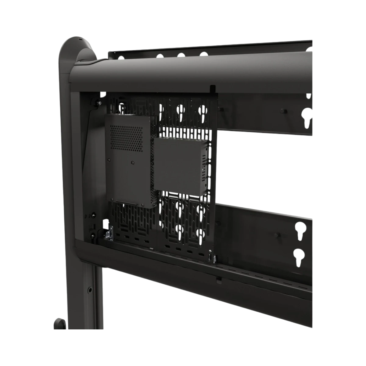 - Built-in cable management maintains a clean and professional appearance by organizing wires