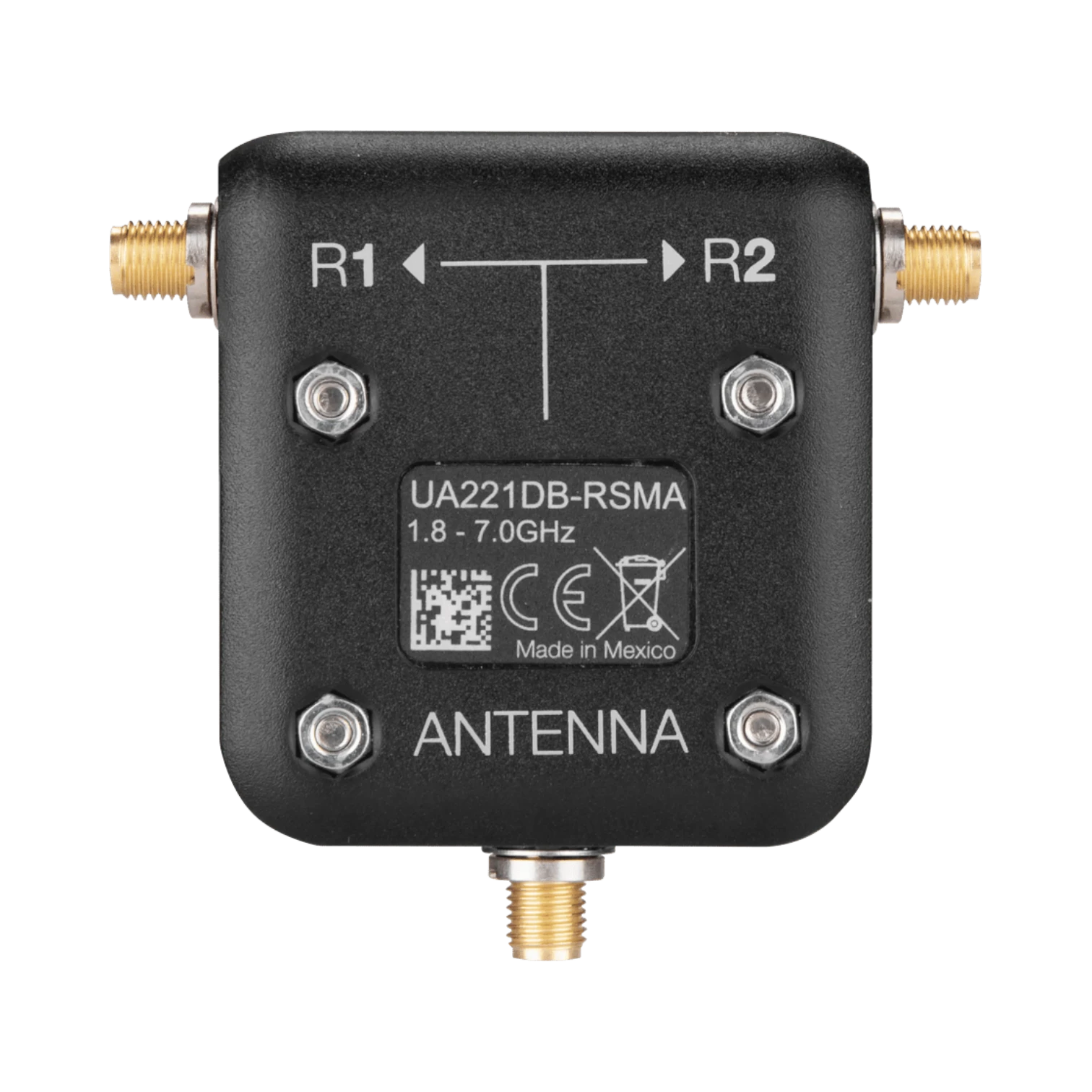 The Shure UA221DB-RSMA is a dual-band passive antenna splitter designed for GLX-D+ wireless systems, enabling two GLXD4R+ receivers to share a single pair of antennas. It supports both 2.4 GHz and 5.8 GHz frequency bands, ensuring strong and clear signal reception while minimizing interference. This splitter is compatible with omnidirectional and directional antennas, making it a flexible addition to professional wireless audio setups.