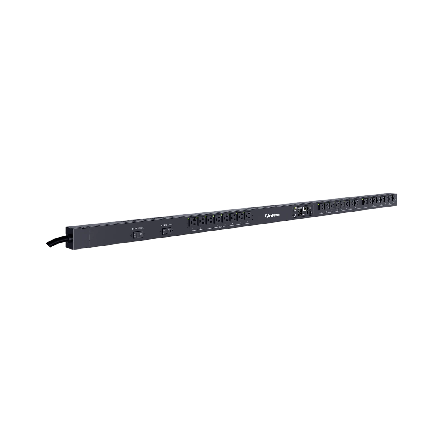 The CyberPower PDU41102 is a power distribution unit designed to deliver reliable and flexible power management in IT and industrial environments. It provides 24 NEMA 5-20R outlets supplying 120 volts at a maximum current of 30 amps through a single NEMA L5-30P plug. Its 0U vertical rackmount design allows installation in tight spaces without sacrificing outlet capacity, making it a practical choice for data centers, server rooms, and industrial racks where space and uptime are critical.