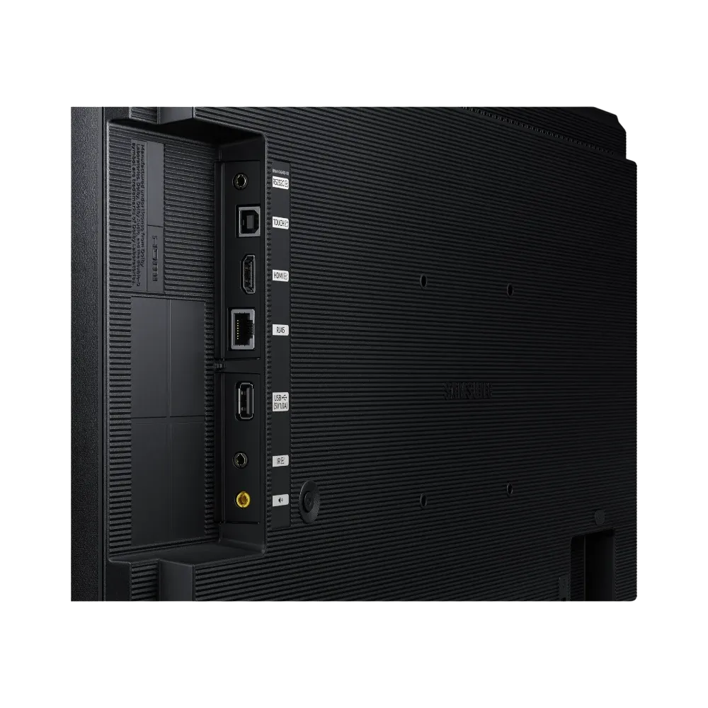 Equipped with the built-in MagicINFO S player running on Tizen 4.0, this display can play videos, images, and HTML content directly without needing an external media player. Network connectivity options include Wi-Fi and wired LAN, allowing easy remote updates of content playlists. Local inputs such as HDMI 1.4 and USB 2.0 support additional media sources, and a stereo mini jack enables audio output to external speakers when required.
