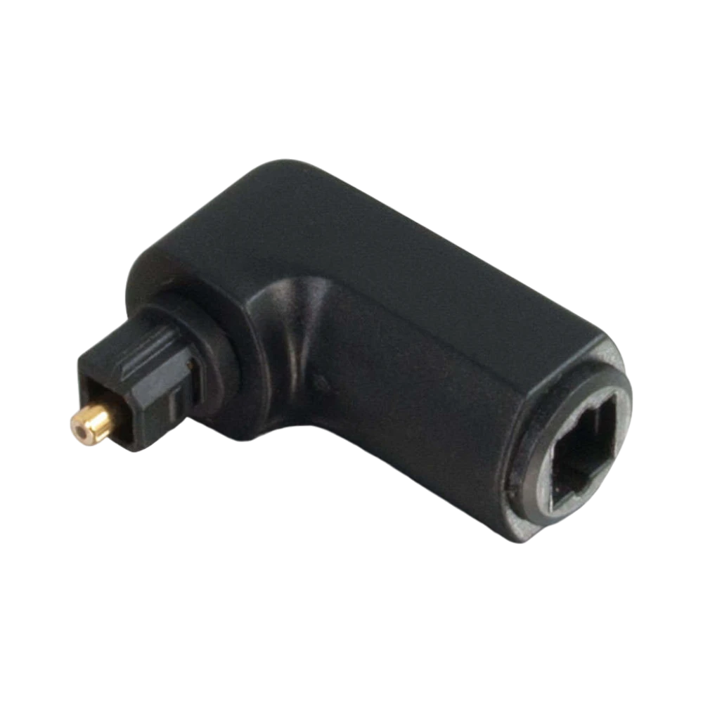 This adapter fits standard TOSLINK optical audio cables and ports, making it compatible with a wide range of home theater receivers, soundbars, and other audio equipment that use optical connections. Its right-angle form factor is ideal for setups where rear panel space is limited or cables need to be routed neatly.