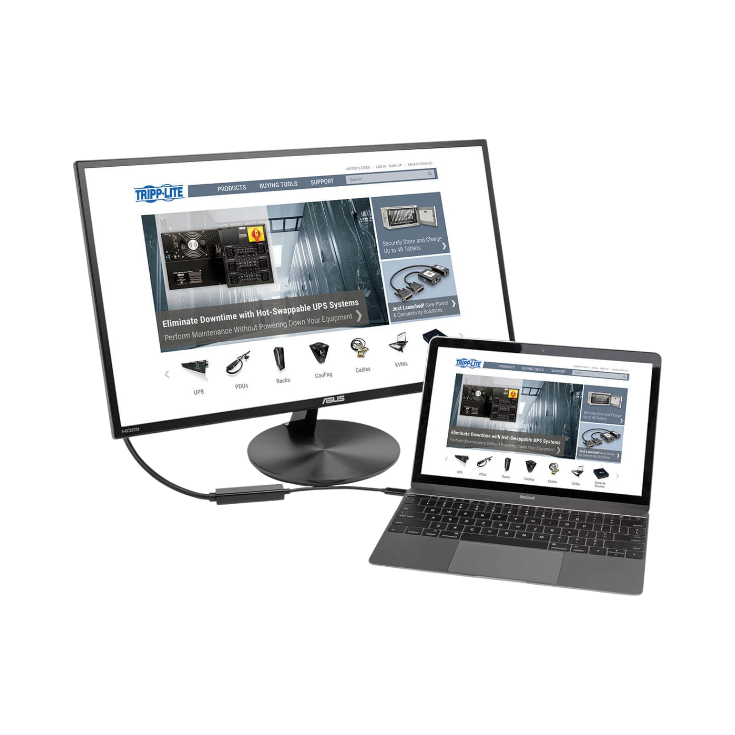 This adapter cable works with any device featuring a USB-C or Thunderbolt 3 port, including many modern laptops, tablets, and smartphones. It connects directly to HDMI-enabled displays such as TVs, monitors, and projectors, making it suitable for extending or mirroring screens in various environments.