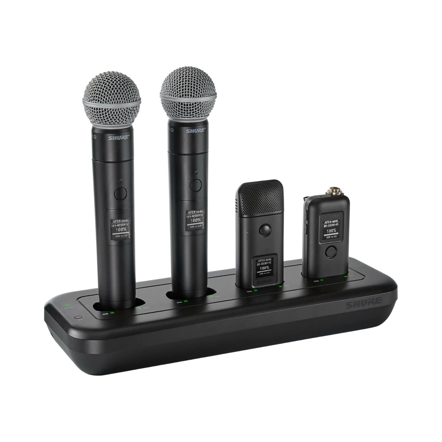 - Charges up to four MXW transmitters at once, supporting flexible combinations of bodypack, handheld, and boundary models