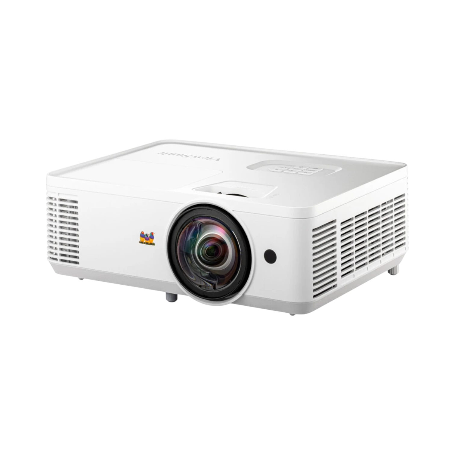The ViewSonic PS502X is a 4000-lumen XGA short-throw DLP projector designed to deliver bright and clear images in environments where space is limited. Its short-throw lens with a 0.616:1 ratio allows you to project a 100-inch image from just 1.24 meters away, reducing glare and shadows for better viewing. With a native resolution of 1024 × 768 and a contrast ratio of 15,000:1, it produces sharp visuals with good detail and depth, making it suitable for classrooms, meeting rooms, and small event spaces.