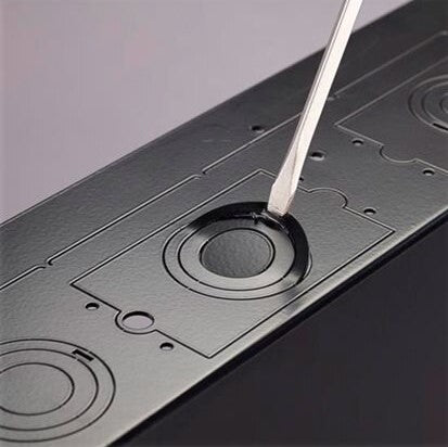 - Multiple knockout sizes for single gang outlets and conduits, allowing easy integration of power and data connections