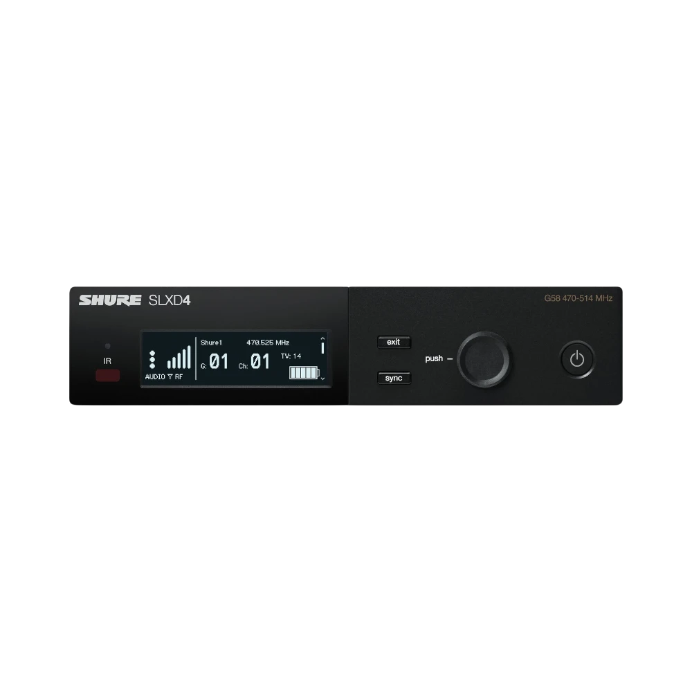 - SLXD4 receiver offers both mic and line level outputs via XLR and 1/4" connectors for flexible integration with various sound systems.