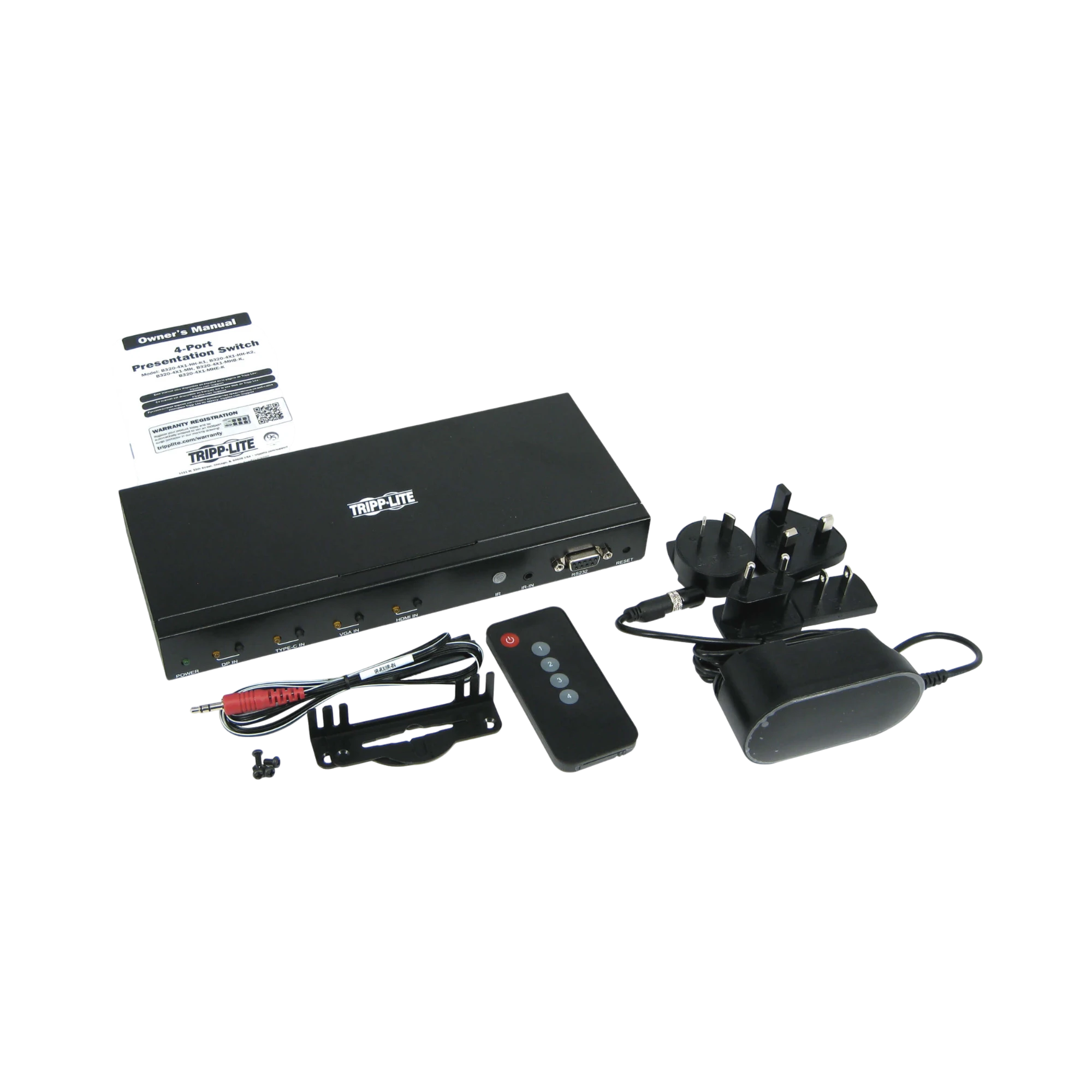 Setting up the B320-4X1-MH is straightforward and requires no additional software. Simply connect your source devices and display, plug in the power, and start switching inputs. The included mounting brackets allow for discreet installation under tables or on walls, keeping the workspace tidy. International power adapters make it easy to deploy this switch in various regions without compatibility concerns.