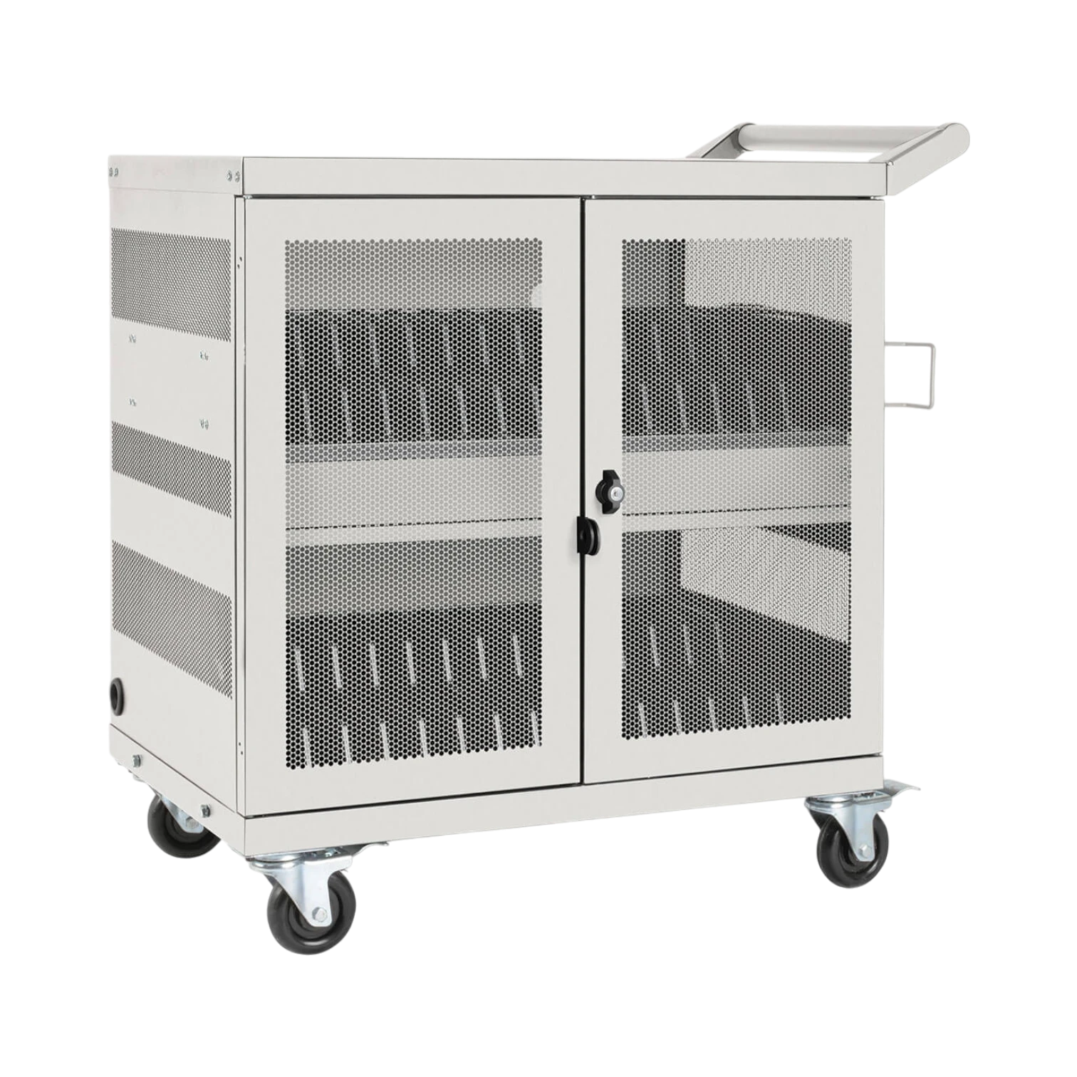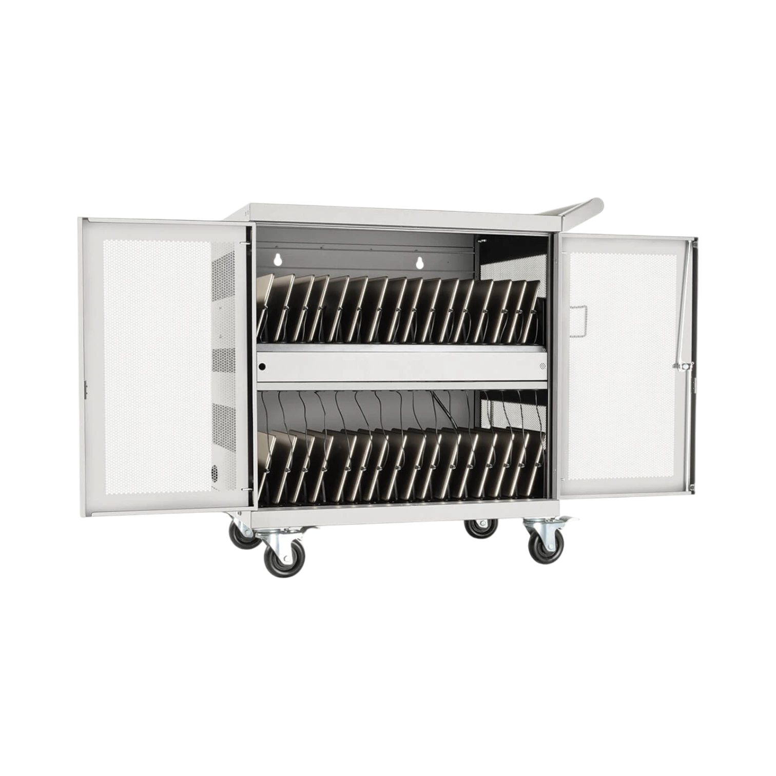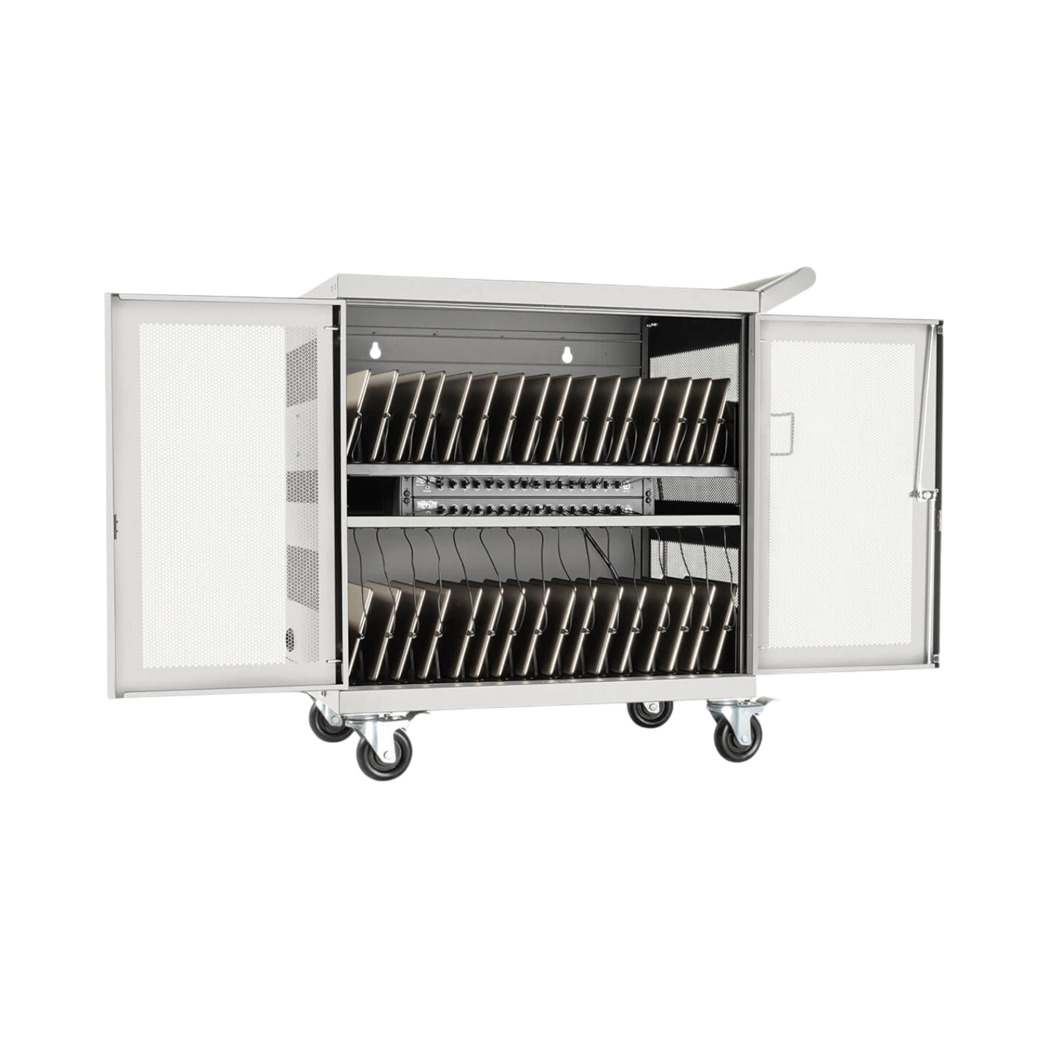 Multi-Device Charging Cart, 32 USB Ports, iPad and Android Tablets, Wall-Mount Option, White