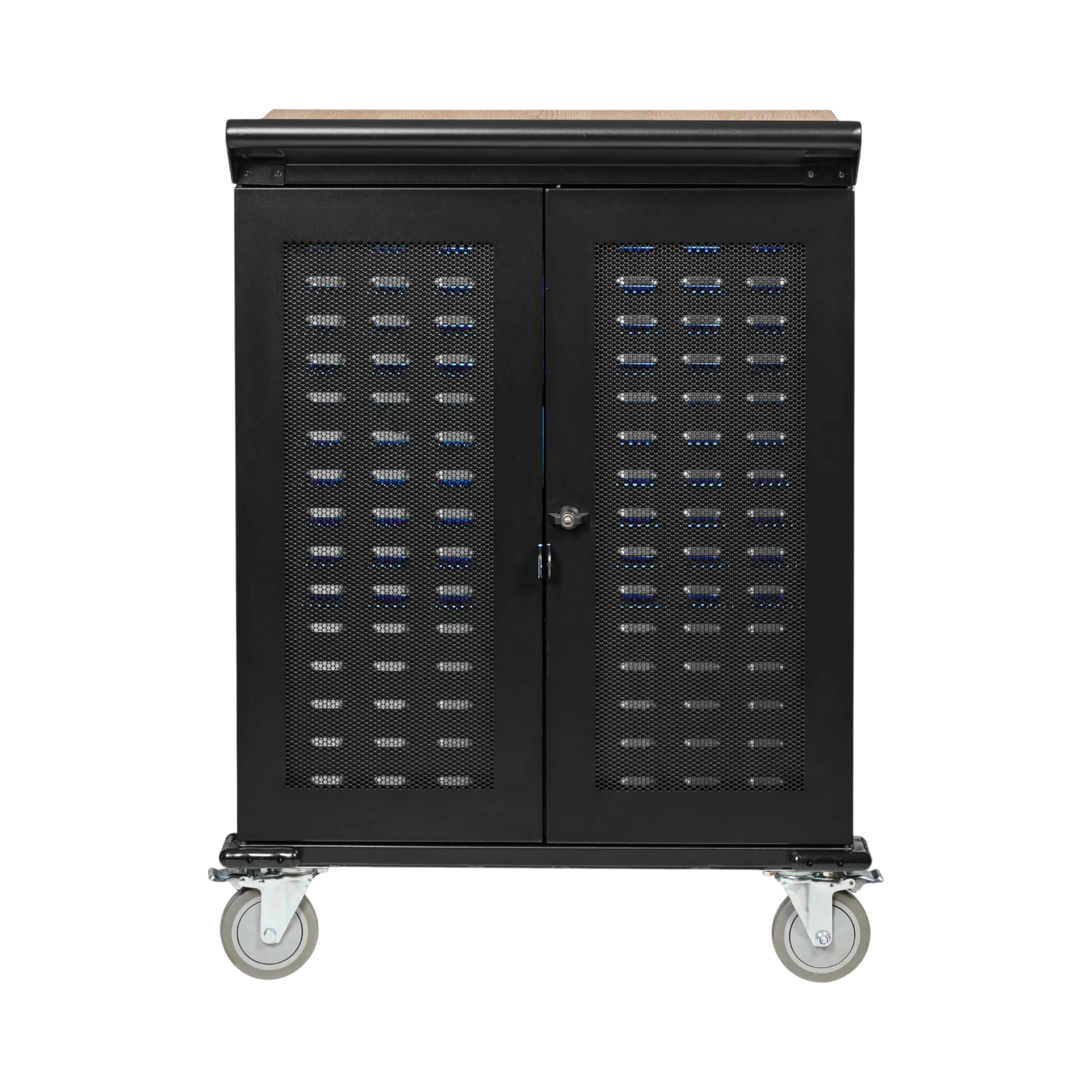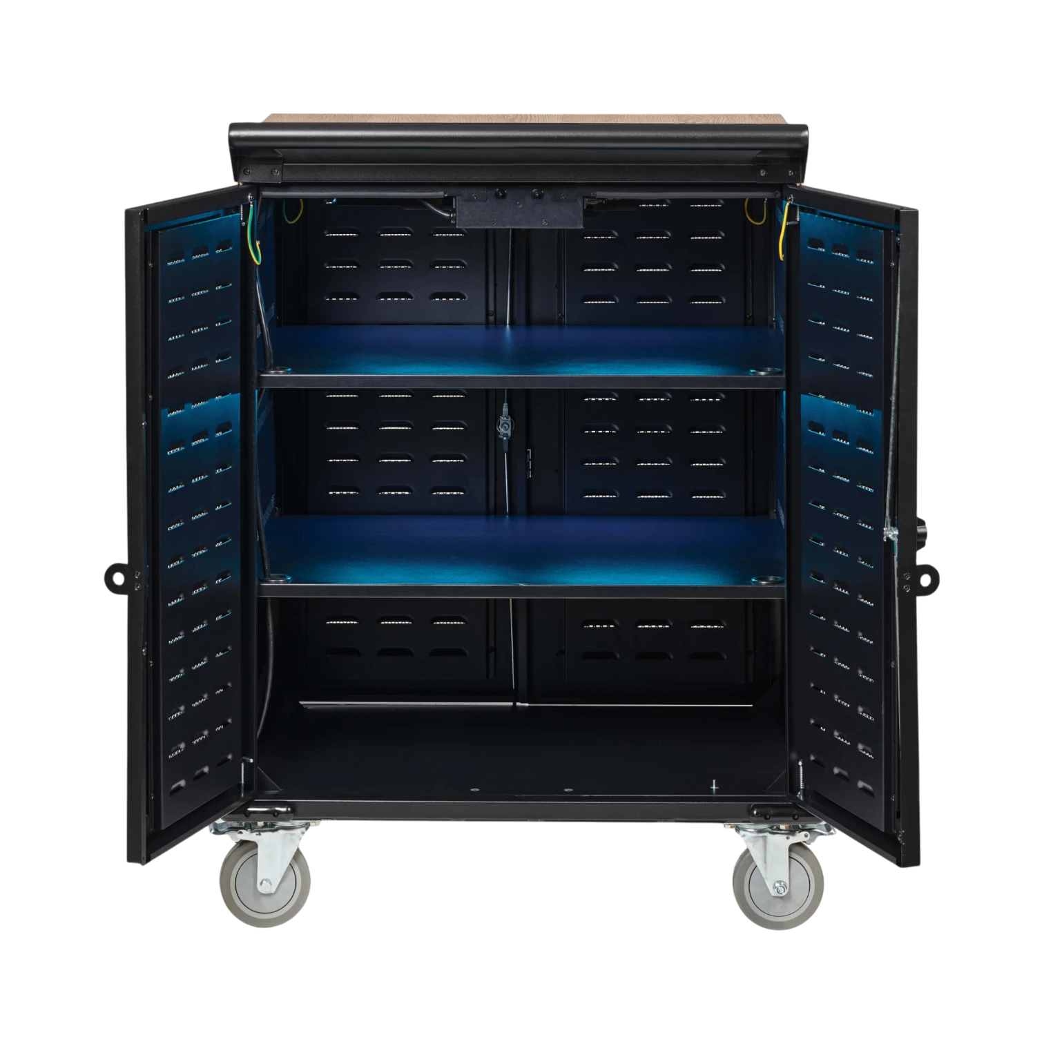 Safe-IT UV Locking Storage Cart for Mobile Devices and AV Equipment, Wood-Grain Top