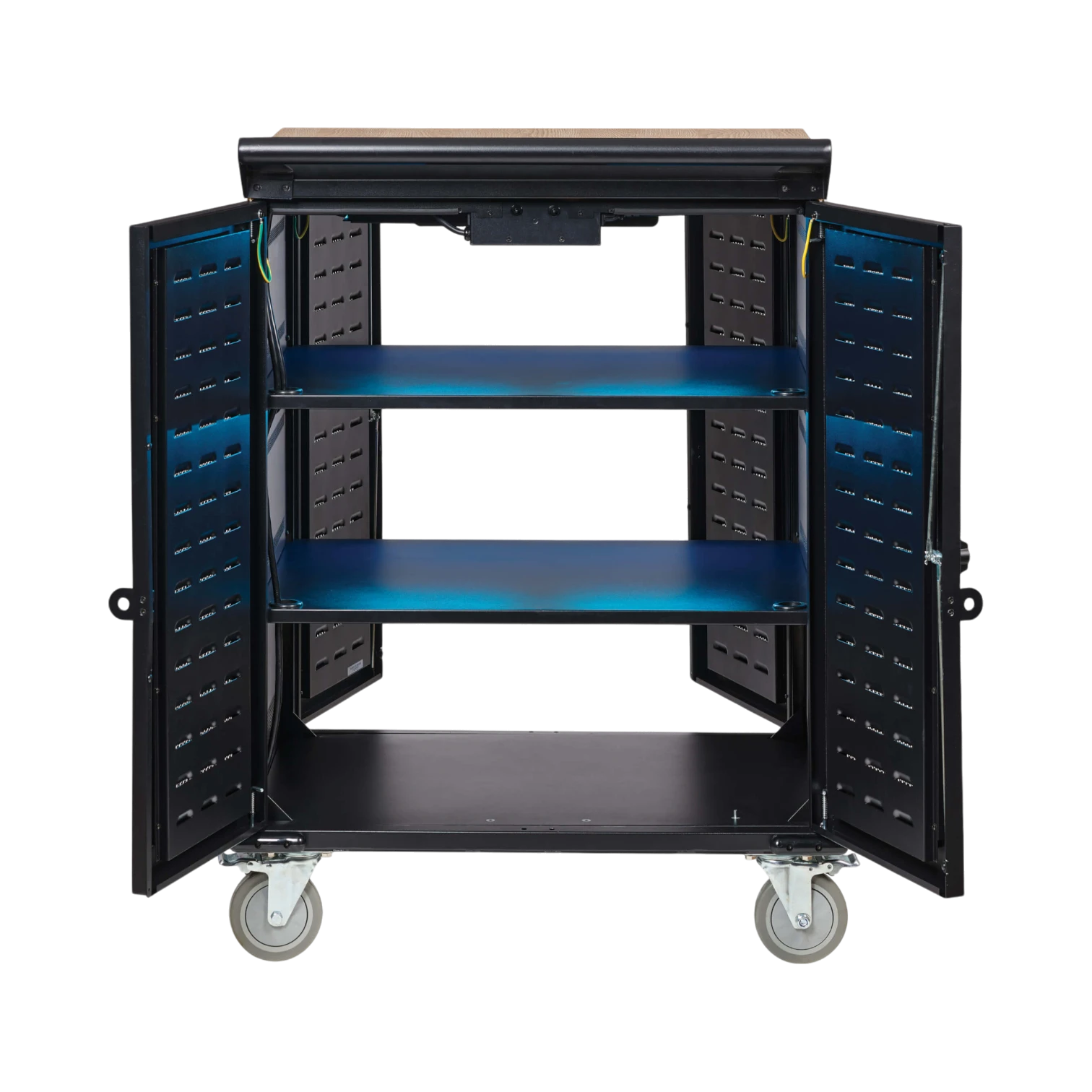 The cart fits well in schools, healthcare facilities, offices, and other professional settings where secure storage and device sanitization are priorities. It supports environments that require frequent device sharing and high hygiene standards, helping reduce the risk of contamination while keeping equipment organized and protected.