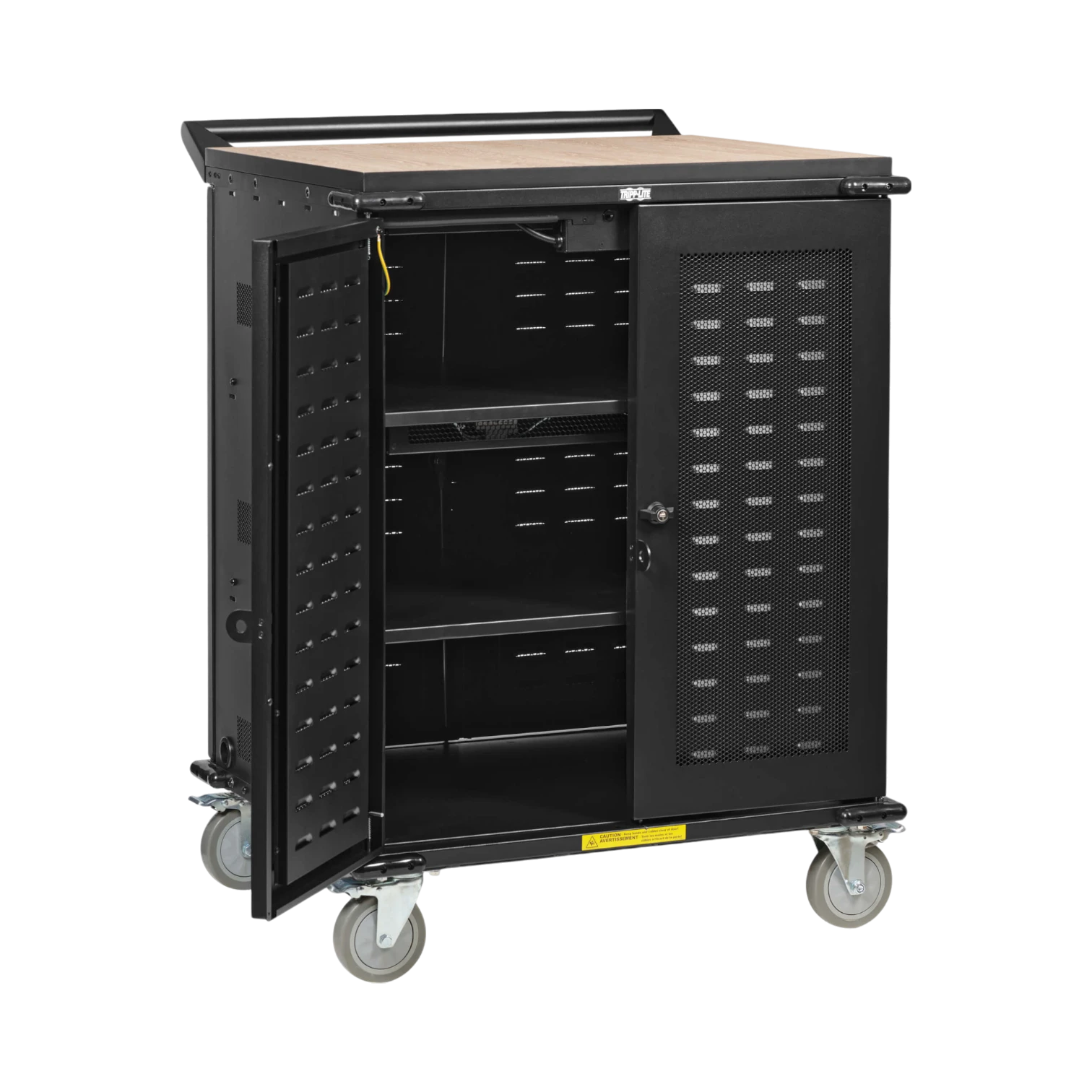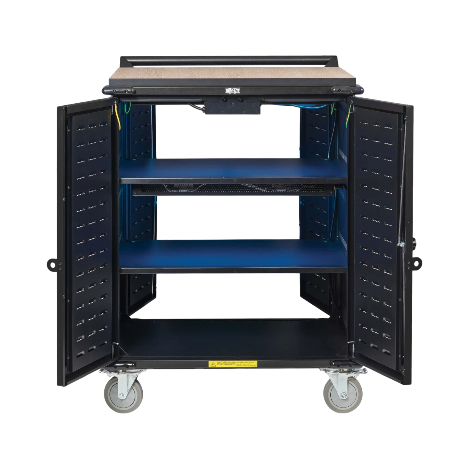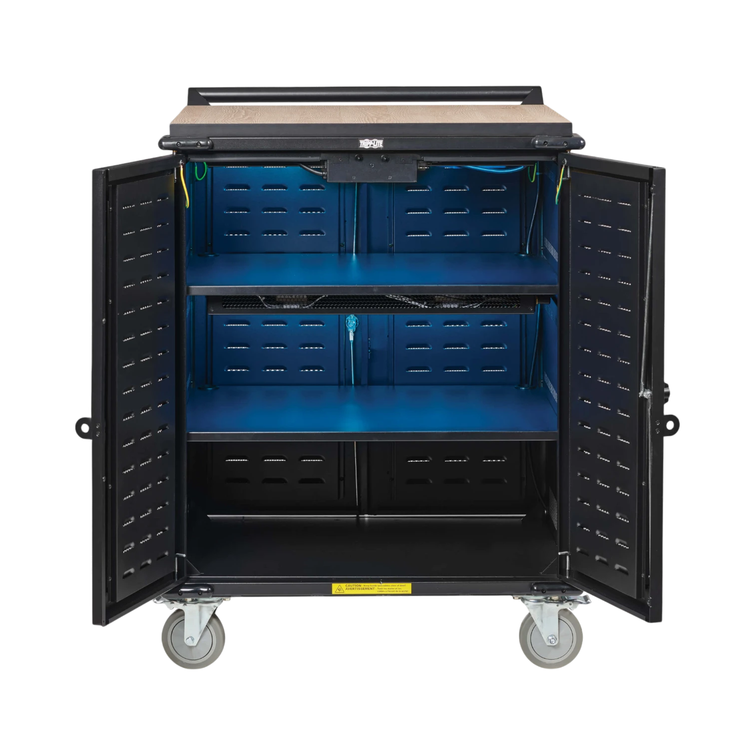 Tripp Lite Safe-IT UV Locking Storage Cart for Mobile Devices and AV Equipment, Wood-Grain Top is backordered and will ship as soon as it is back in stock.