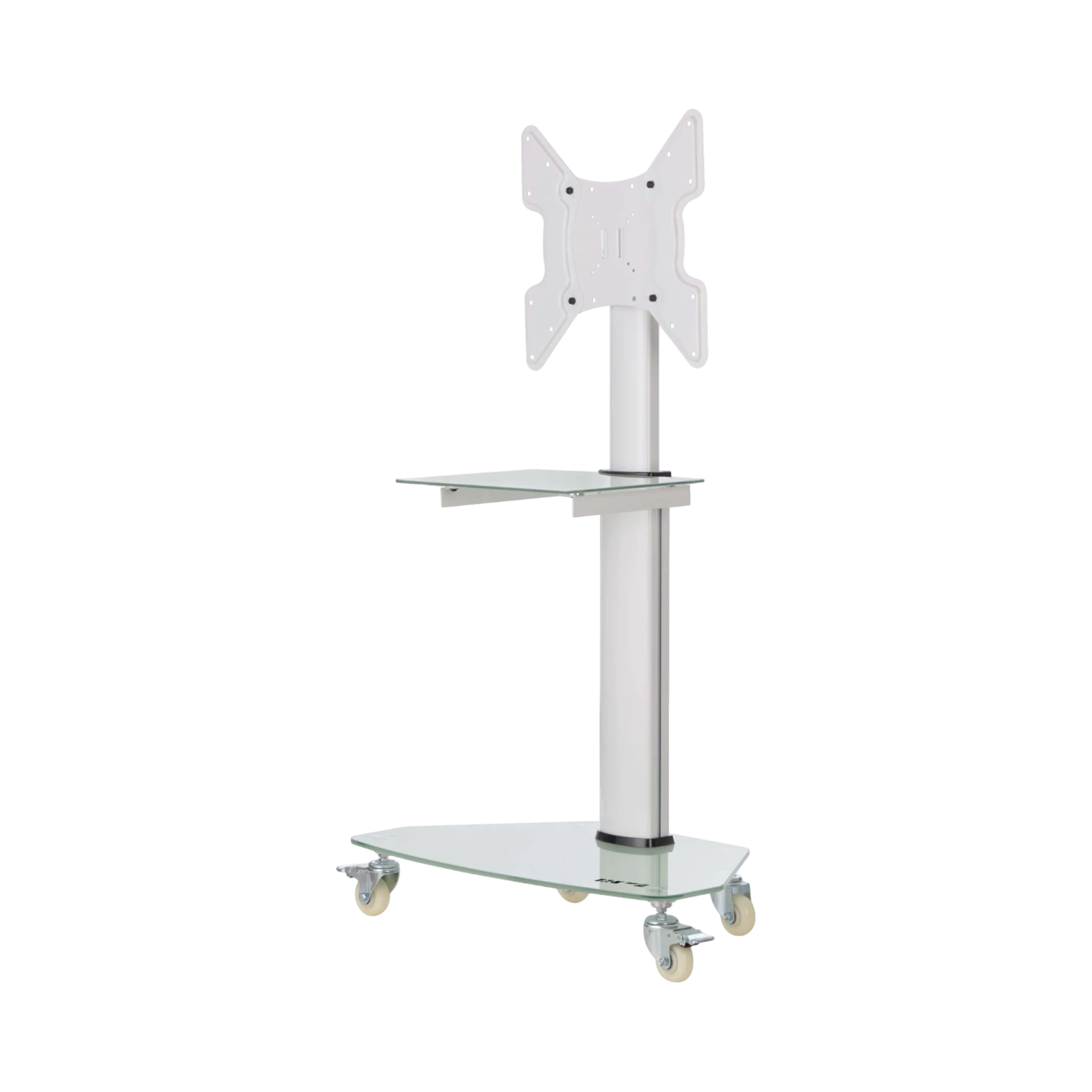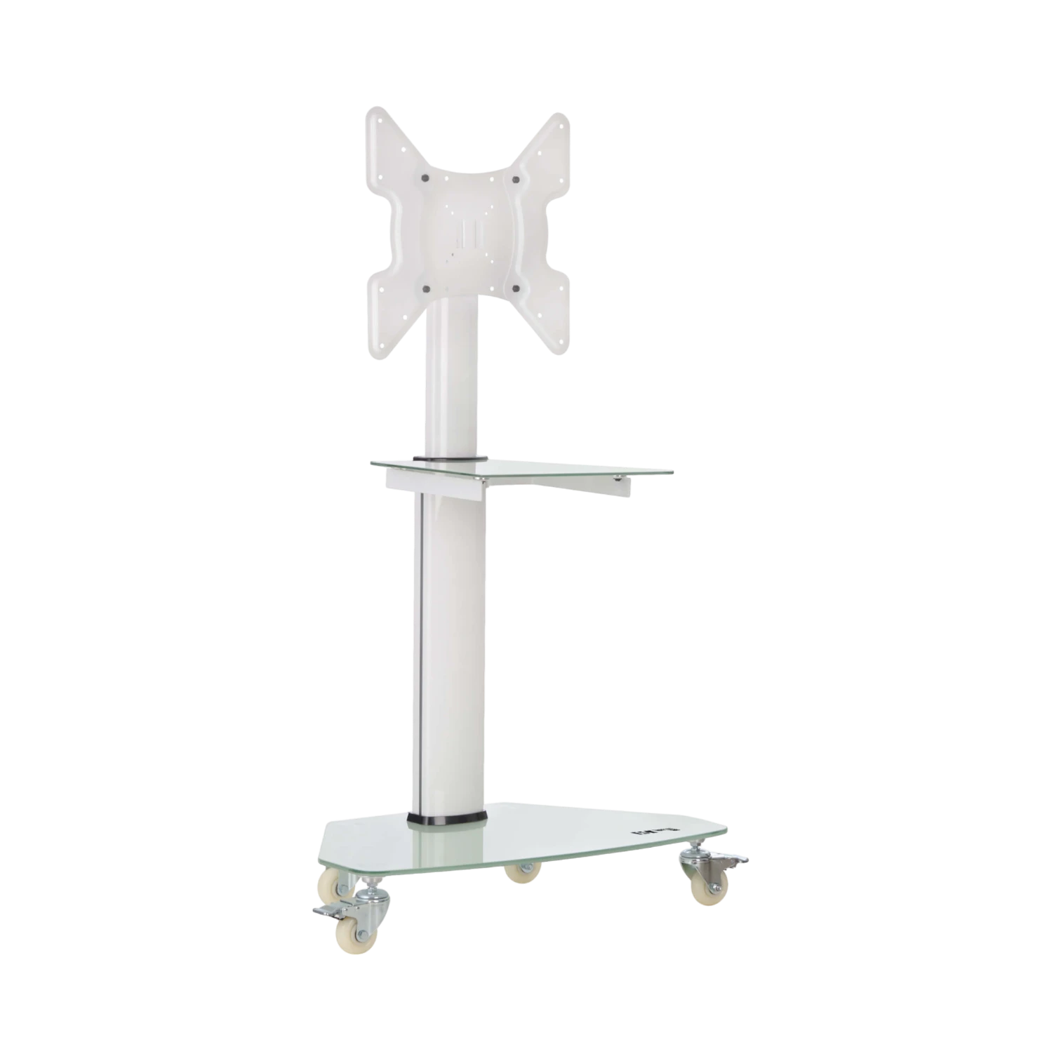 Premier Rolling TV Cart for 32" to 55" Displays, Frosted Glass Base and Shelf, Locking Casters, White