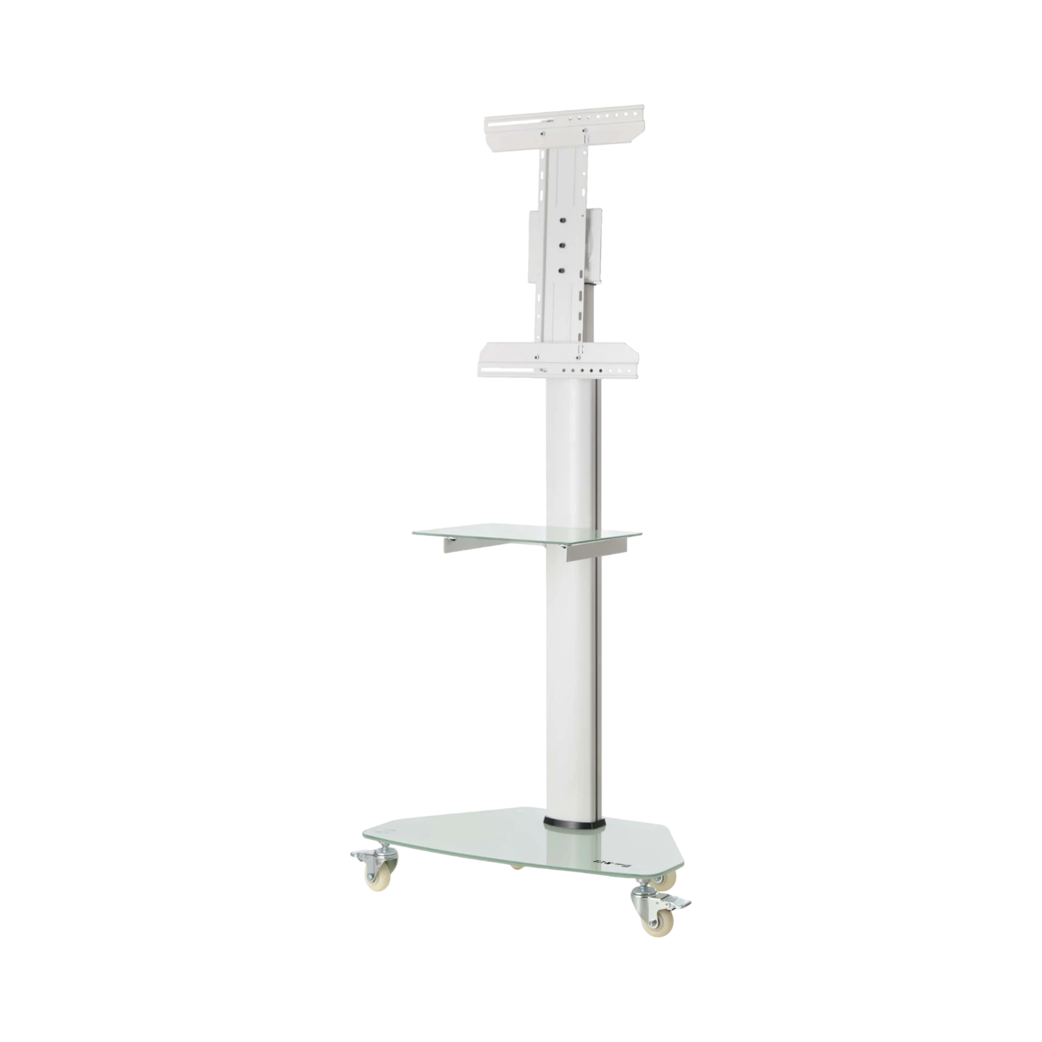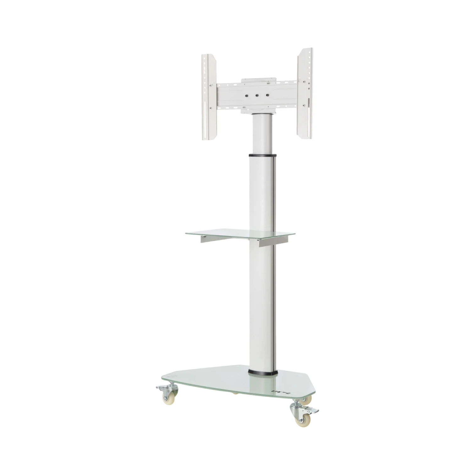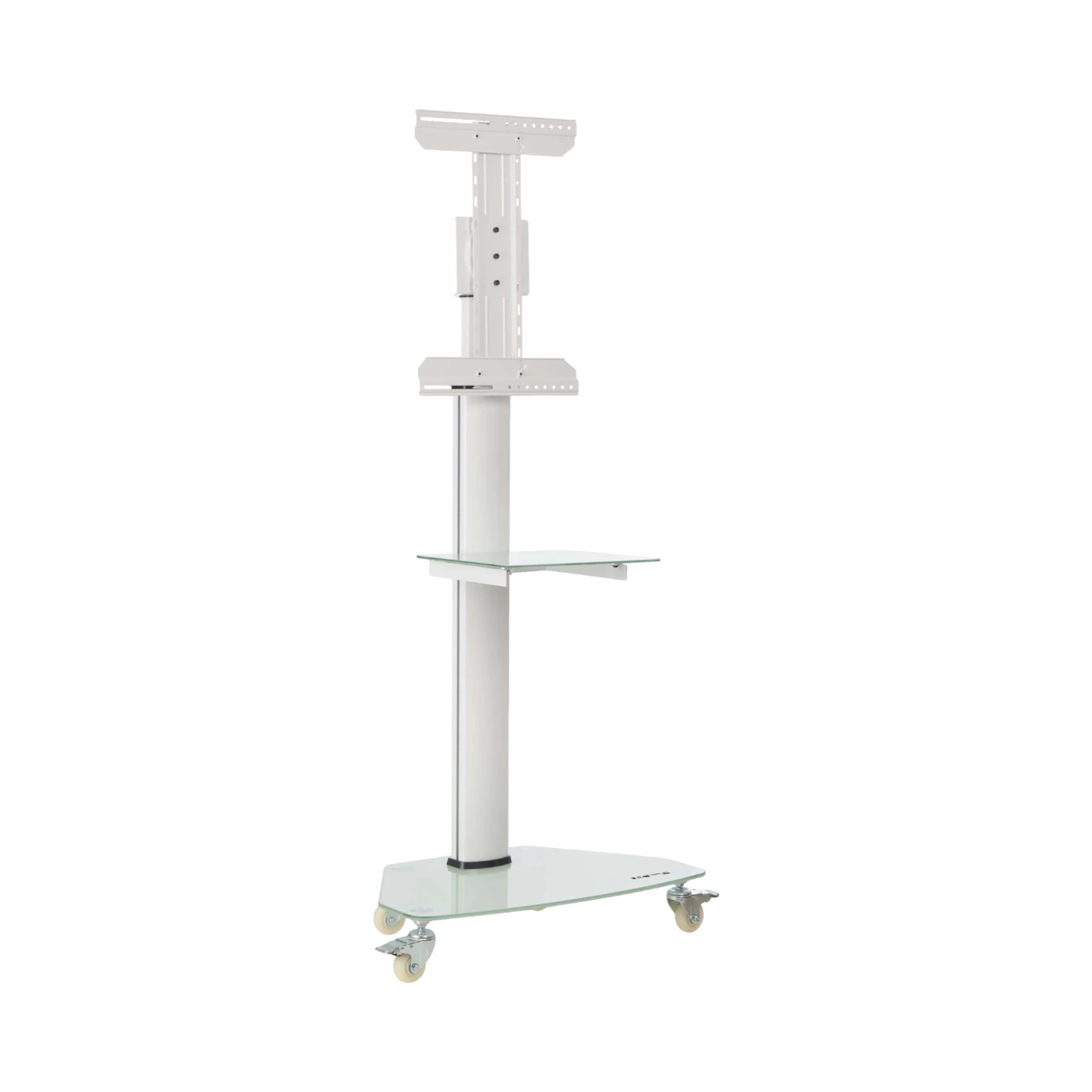 Premier Rolling TV Cart for 37" to 70" Displays, Frosted Glass Base and Shelf, Locking Casters, White