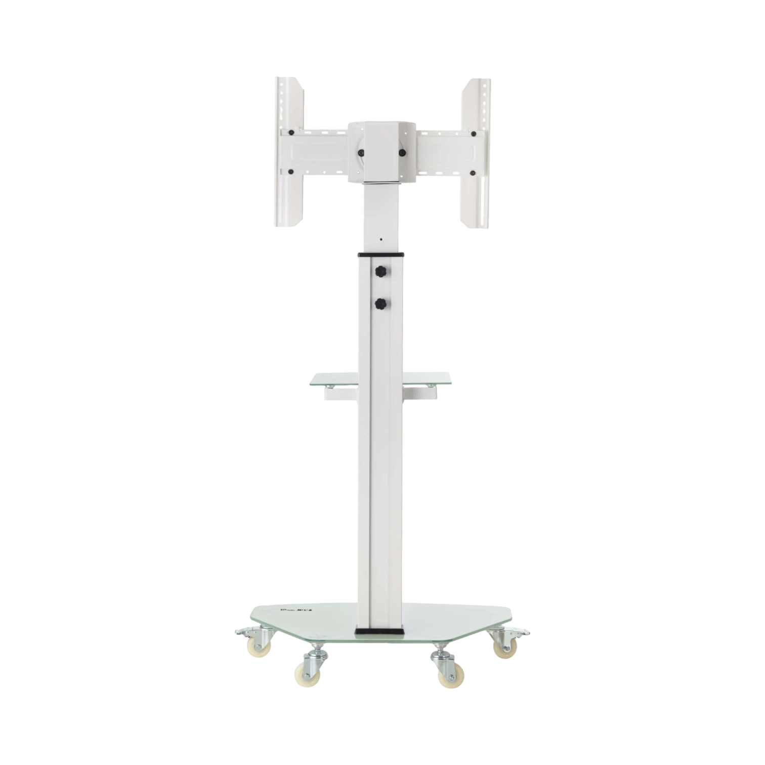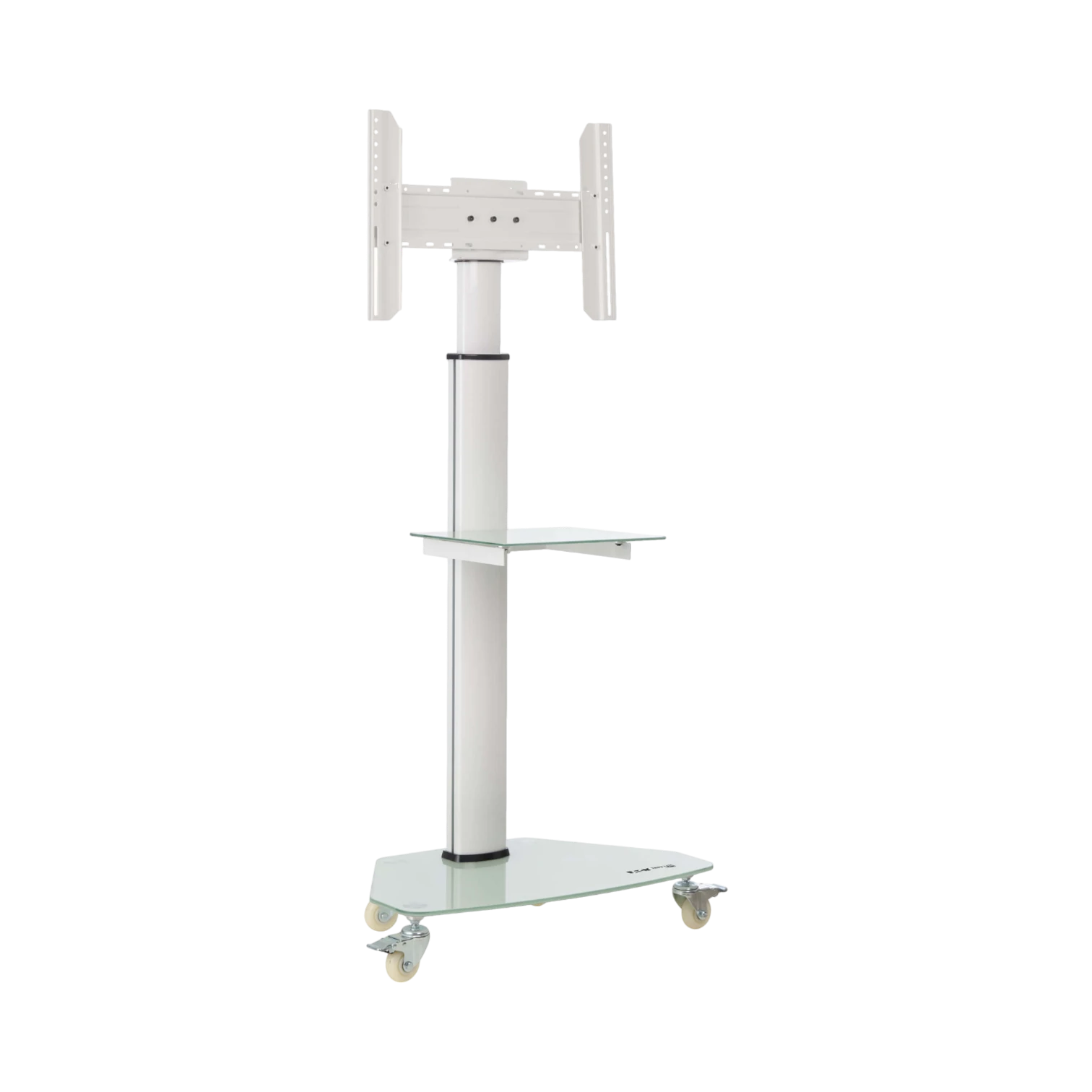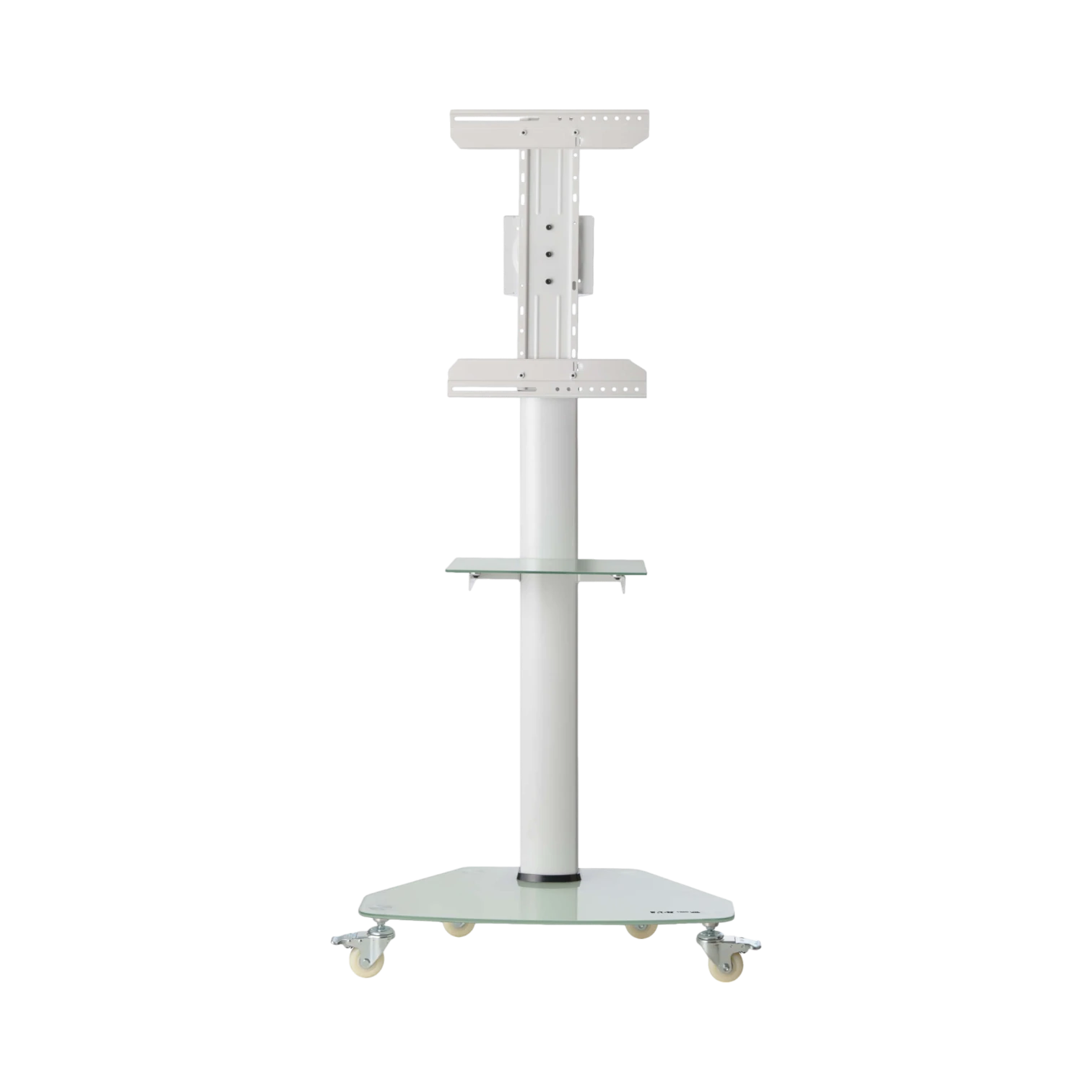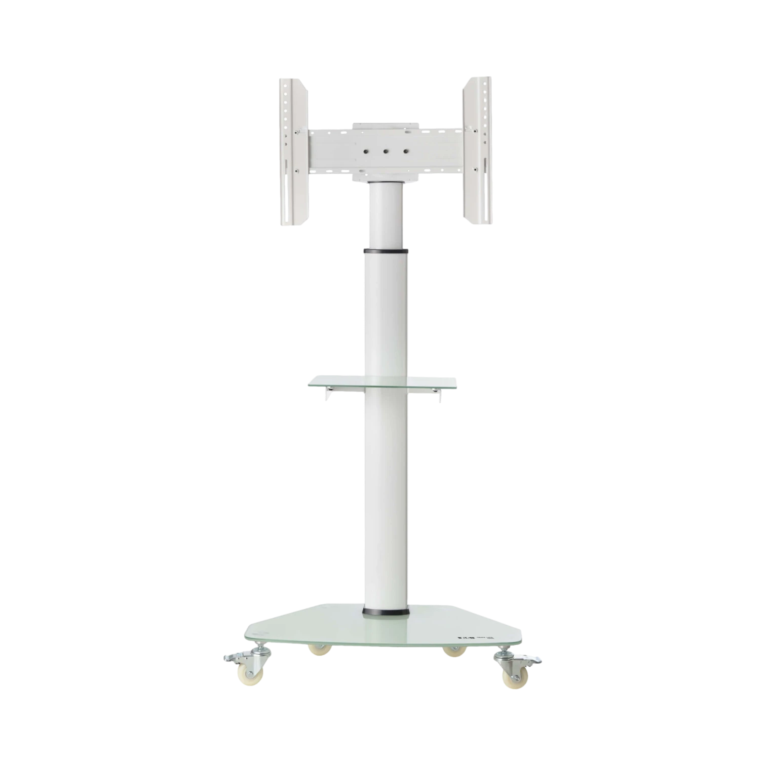 Premier Rolling TV Cart for 37" to 70" Displays, Frosted Glass Base and Shelf, Locking Casters, White