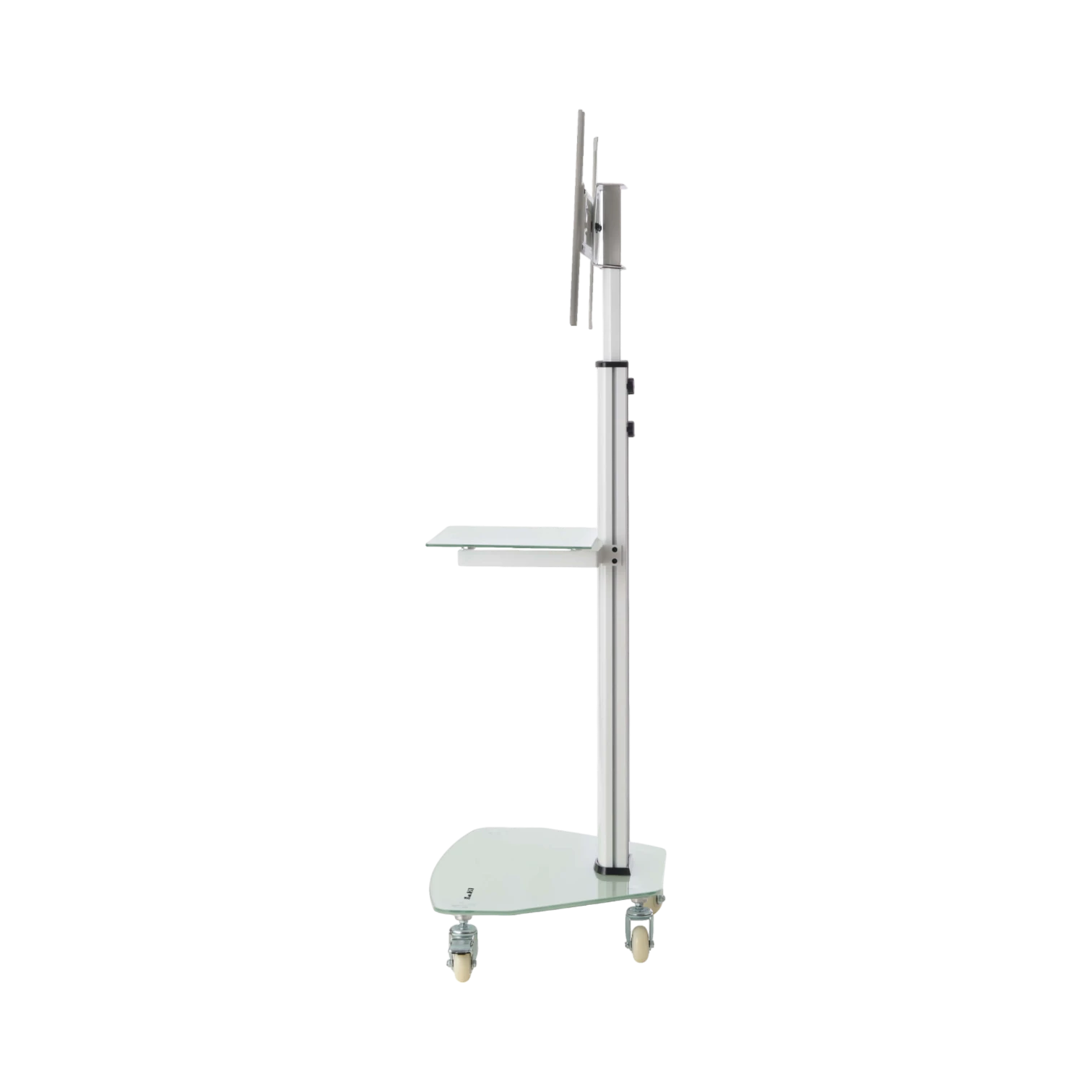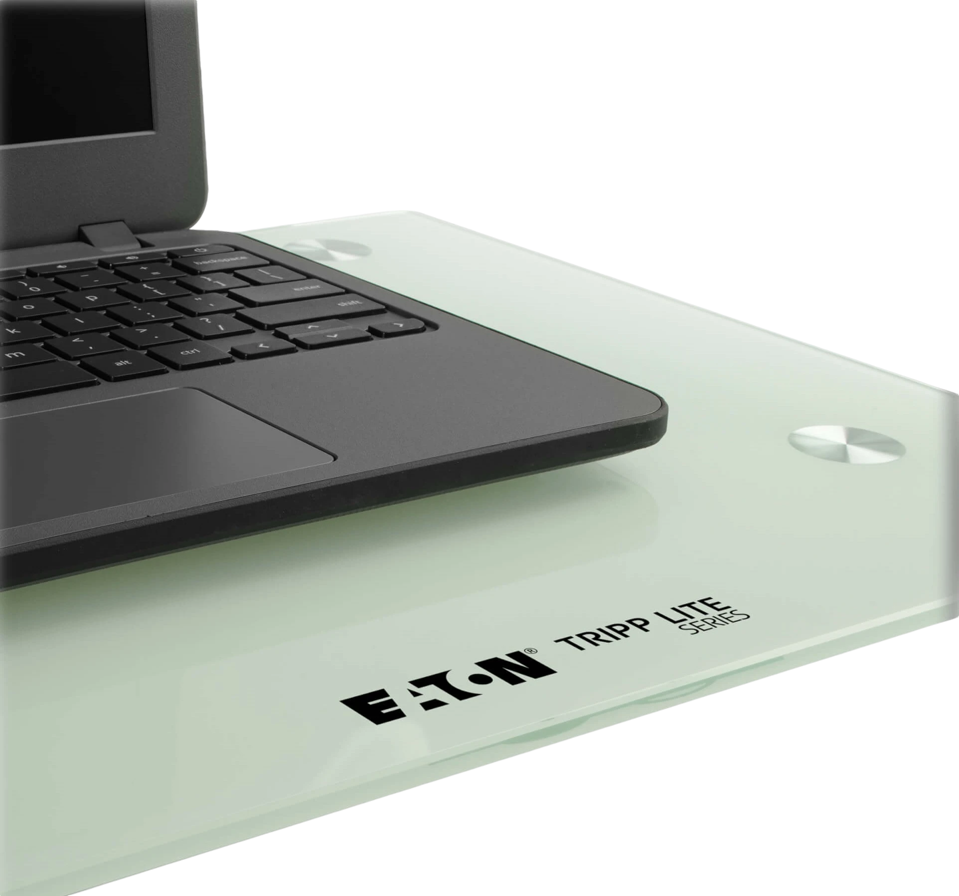 - Frosted glass shelf supports up to 11 pounds, providing a convenient surface for laptops, media players, or video-conference cameras