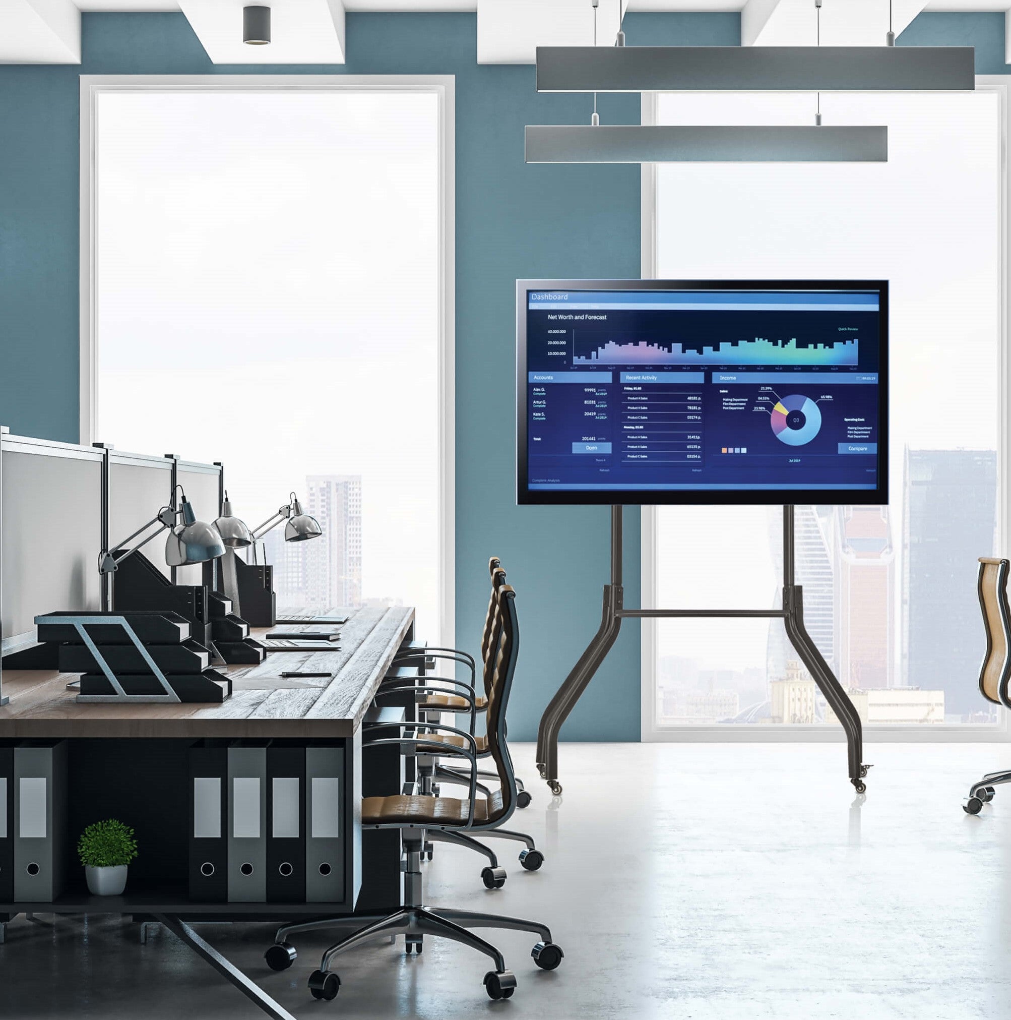This rolling cart is ideal for environments where flexibility is key, such as offices, training centers, trade shows, and medical waiting areas. Its smooth-rolling casters and locking system allow you to move large displays effortlessly and secure them safely once positioned. The wide leg design enhances stability, preventing accidental tipping during transport or use. This makes it a practical solution for teams that need to share visual content across multiple rooms or locations without investing in multiple screens.