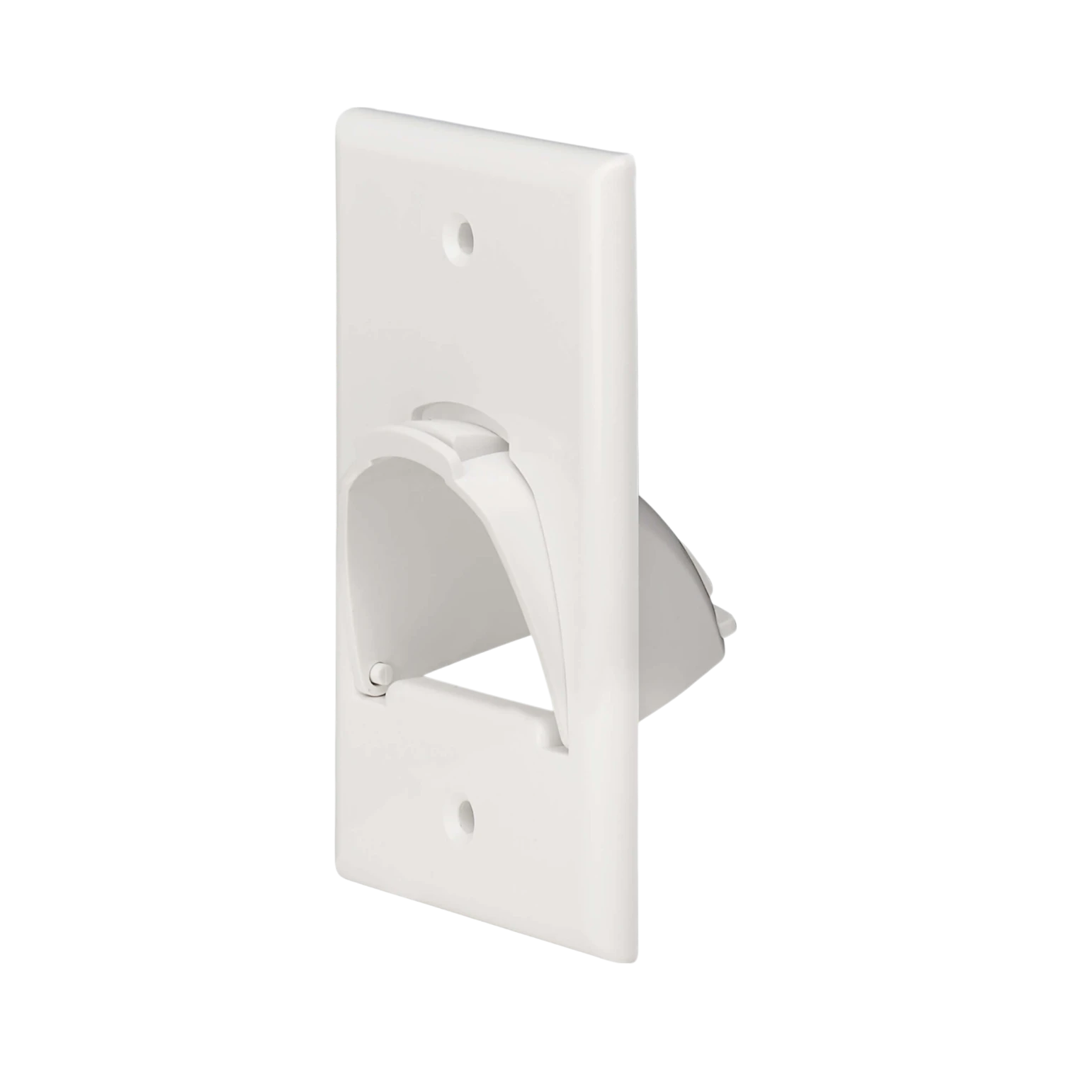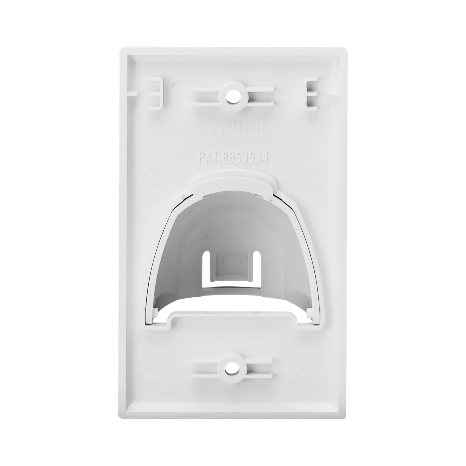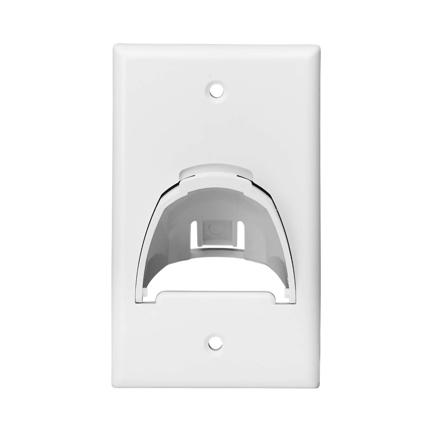 This wall plate installs easily into any standard single-gang junction box using the included mounting screws. Its curved opening simplifies cable routing by guiding cables gently through the plate, reducing the risk of damage during installation. The covered design also helps maintain a clean appearance by minimizing dust accumulation behind the wall.
