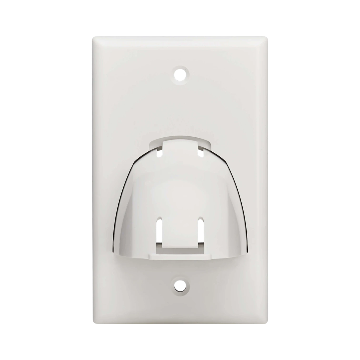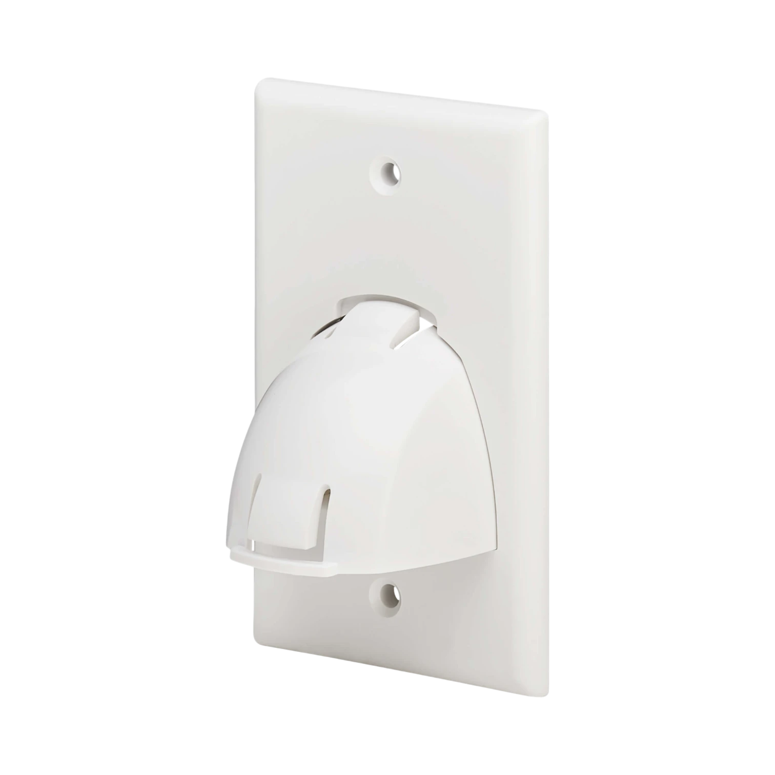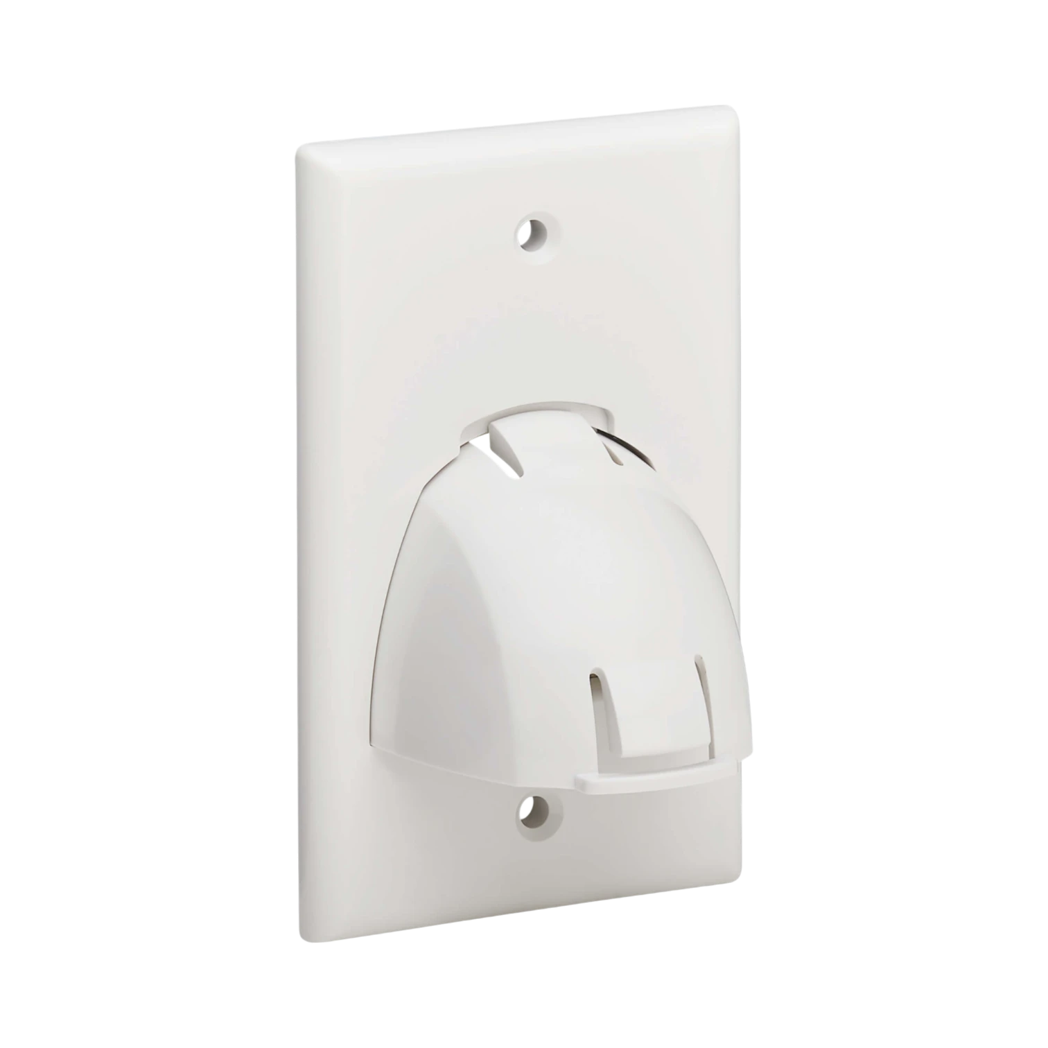 This wall plate installs easily into any standard single-gang junction box using the included mounting screws. Its curved opening simplifies cable routing by guiding cables gently through the plate, reducing the risk of damage during installation. The covered design also helps maintain a clean appearance by minimizing dust accumulation behind the wall.