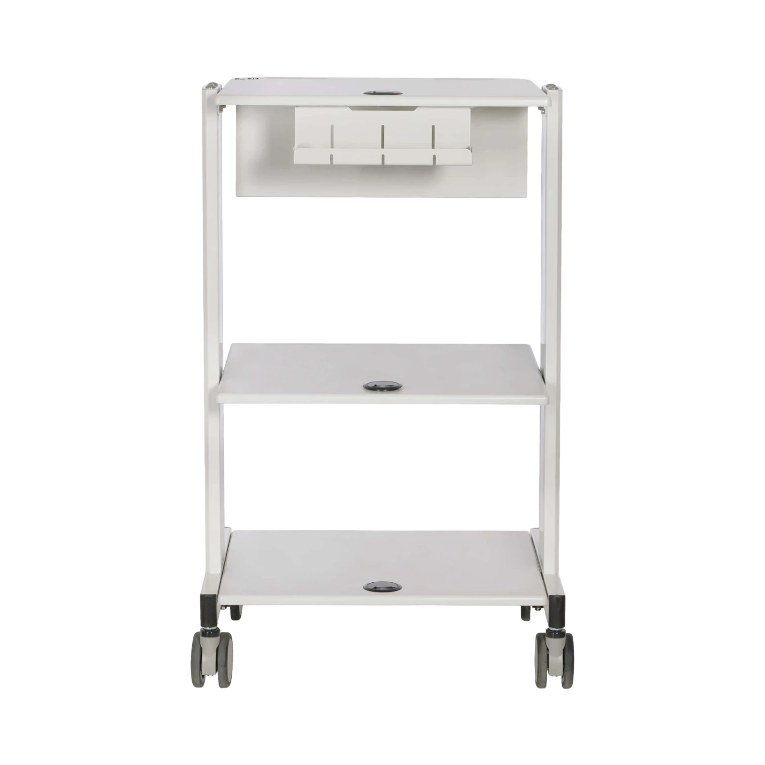 - Durable construction combining steel framing and engineered wood shelves withstands daily movement and supports up to 45 pounds of equipment
