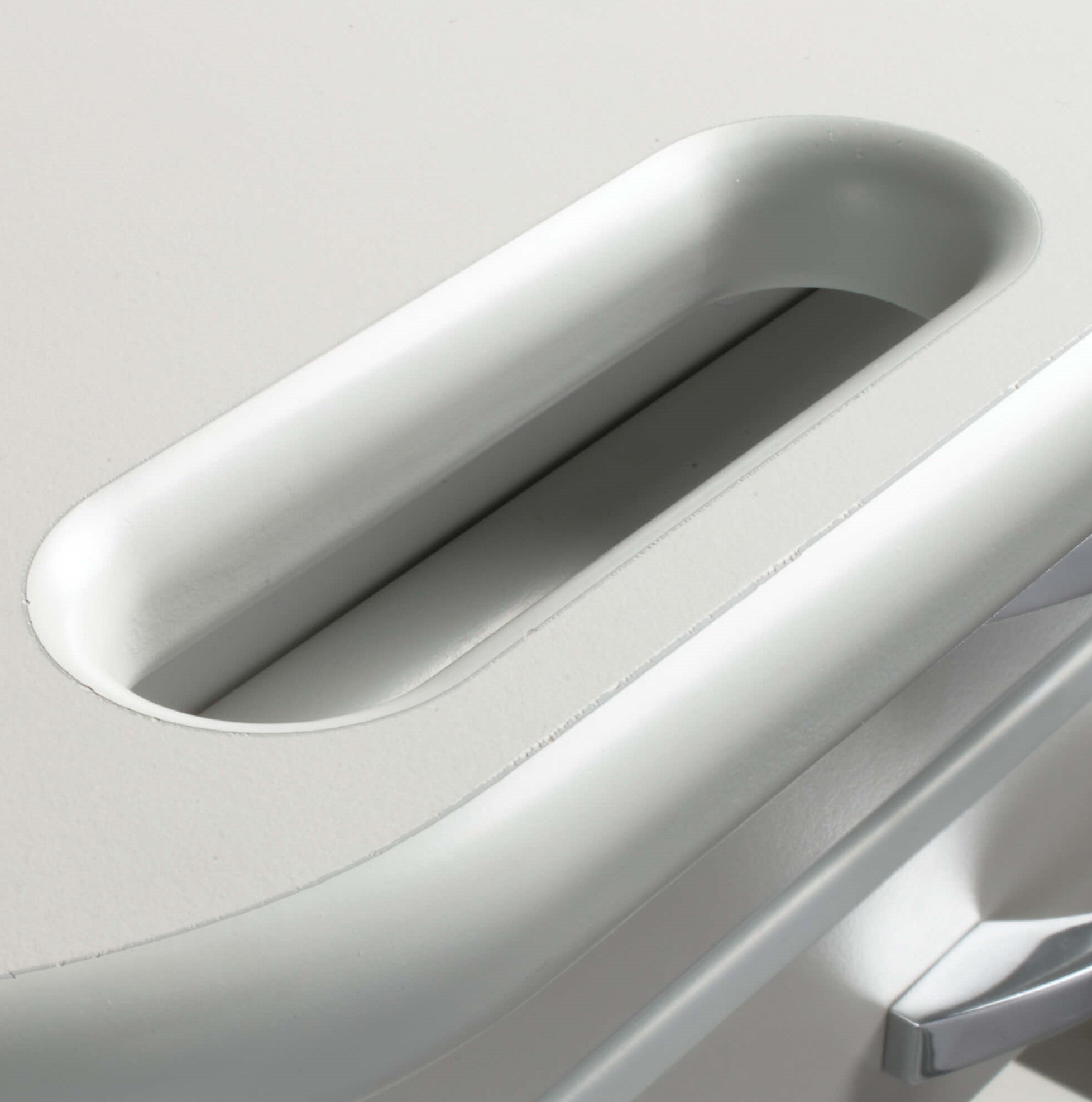 - Slide-out mouse pads on both sides accommodate right- and left-handed users, expanding workspace when needed