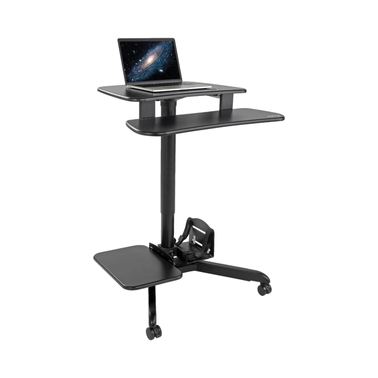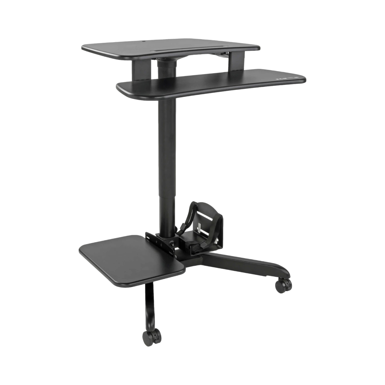 The Tripp Lite WWSSRDSTC is a rolling desk designed to enhance your workspace flexibility and ergonomic comfort. It offers an adjustable height range from 29.5 to 47.2 inches, allowing you to alternate between sitting and standing positions easily. This mobility and adjustability make it suitable for home offices, classrooms, or professional environments where space and posture support are important.