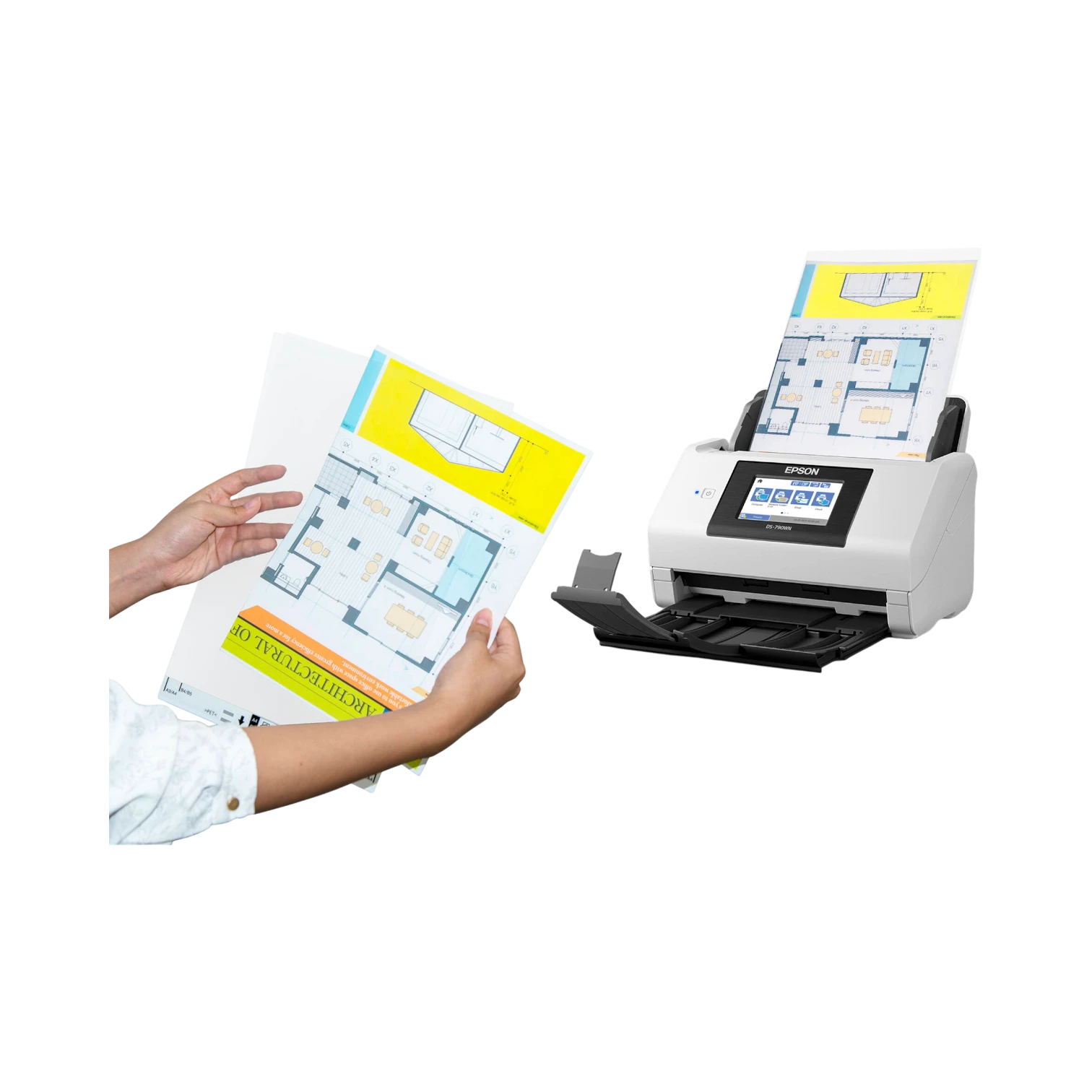 This scanner fits well in corporate offices, legal firms, administrative departments, and other professional settings where fast, reliable document digitization is essential. Its ability to scan long documents and small items like ID cards makes it versatile for specialized tasks. The touchscreen and network features support users who need quick, direct scanning without a PC, making it suitable for shared office spaces and busy reception areas.