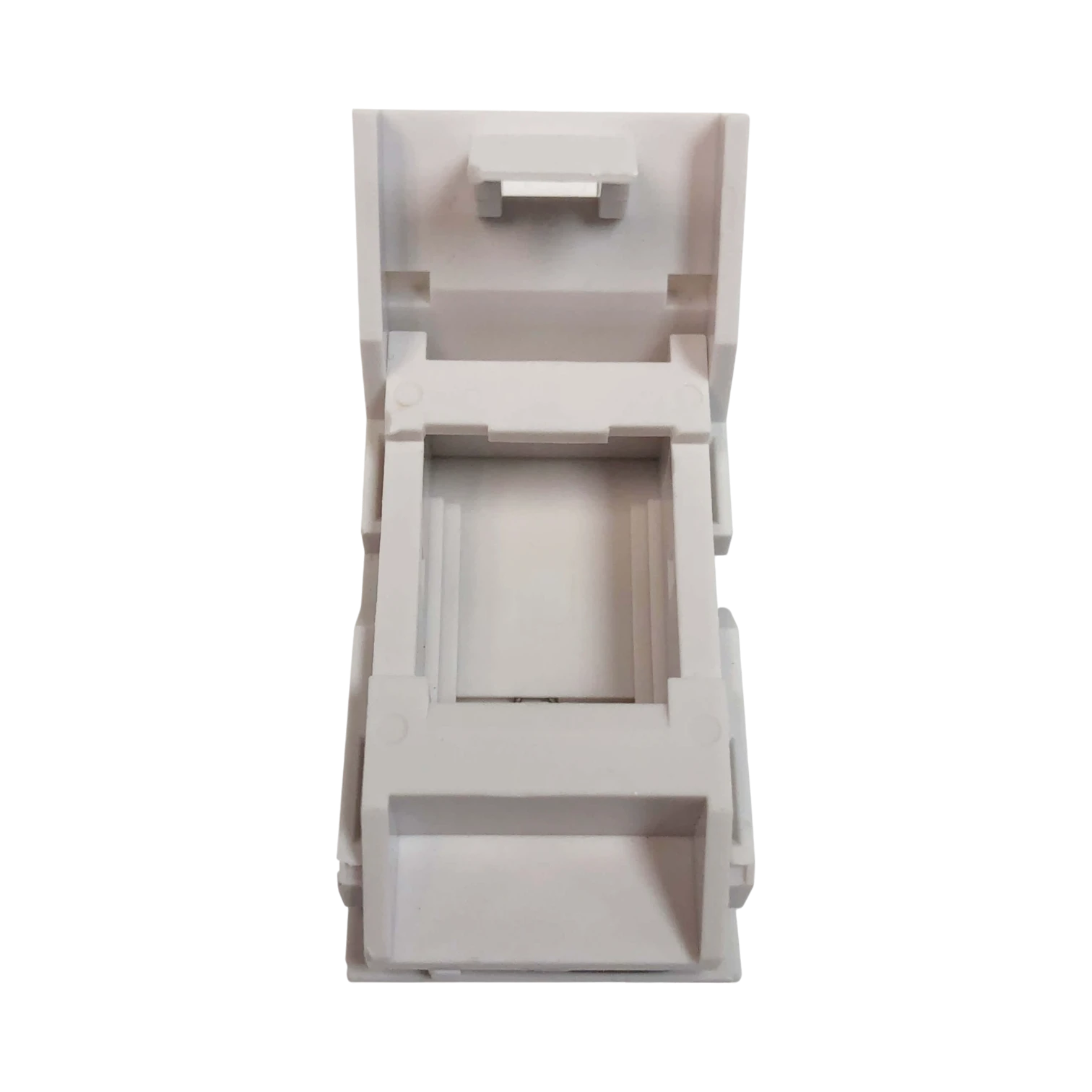 The Tripp Lite N042U-WHM-SA is a 1-port UK-style shuttered angled module designed to organize and manage audio, video, voice, or data connections efficiently. Its compact 25 by 50 millimeter size fits standard gang frames and wall plates, while the angled design reduces cable bending, making it ideal for installations in tight spaces. The white flame-retardant ABS plastic housing ensures durability and safety, maintaining a clean and professional look in any environment.